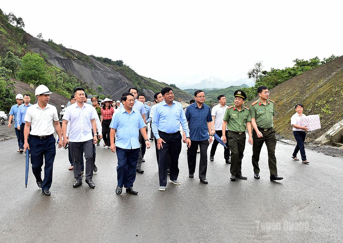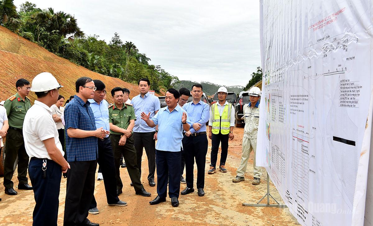 Đồng chí Bí thư Tỉnh ủy Hầu A Lềnh chỉ đạo giải pháp khắc phục khó khăn do yếu tố địa hình trên tuyến đường cao tốc.