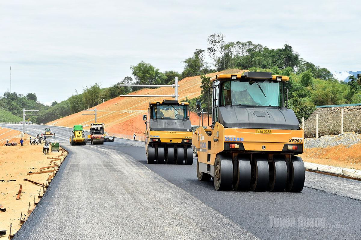 Đối với đoạn qua tỉnh Tuyên Quang có tổng chiều dài 77 km, đến nay, công tác giải phóng mặt bằng cơ bản hoàn thành. Toàn dự án có 13/13 gói thầu đang triển khai, giá trị xây lắp lũy kế đạt khoảng 3.711,6/5.983,7 tỷ đồng, tương đương 62% giá trị hợp đồng.
