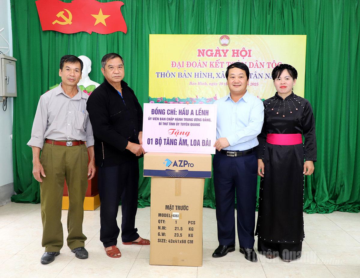 Dịp này, Bí thư Tỉnh ủy Hầu A Lềnh đã trao 420 triệu đồng trích từ Quỹ “Vì người nghèo” hỗ trợ 7 hộ gia đình trong thôn chưa có nhà ở kiên cố, mỗi hộ 60 triệu đồng để làm nhà ở mới; trao 1 bộ tăng âm loa đài để thôn Bản Hình tăng cường công tác thông tin, tuyên truyền, cổ động các phong trào thi đua.