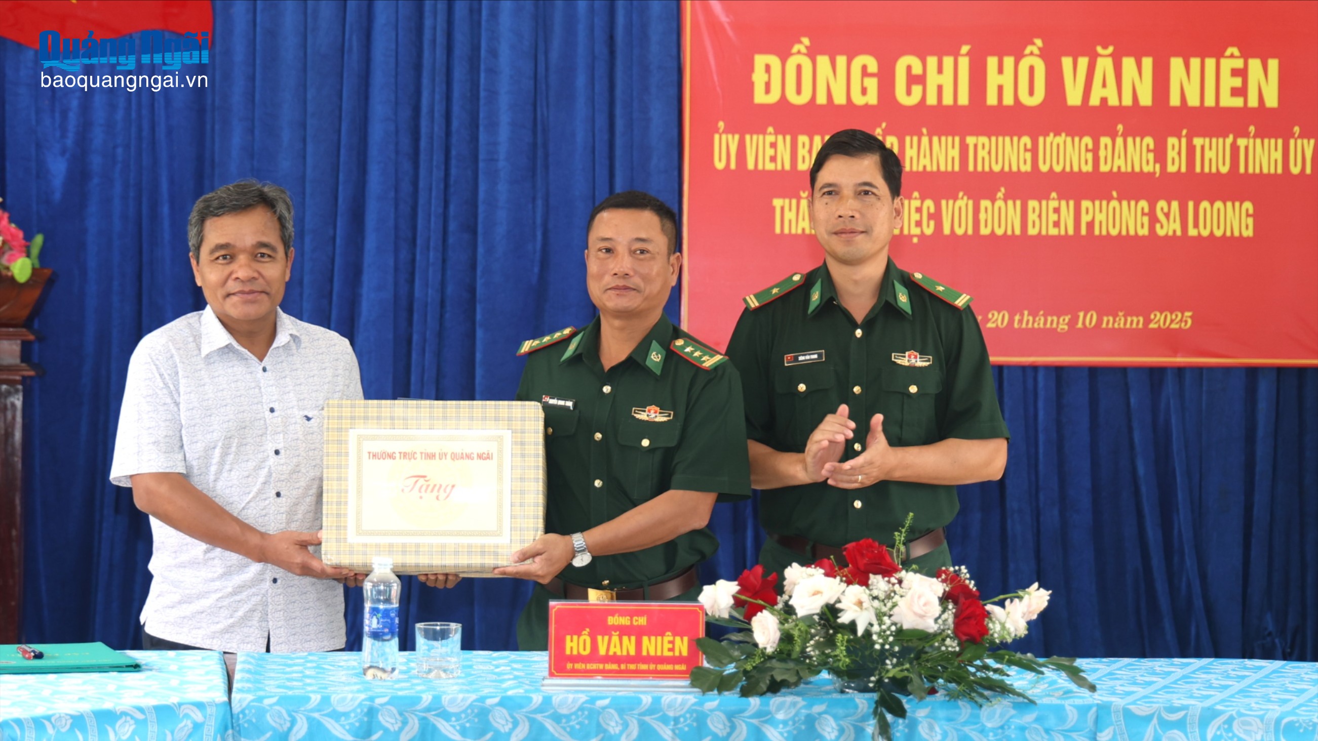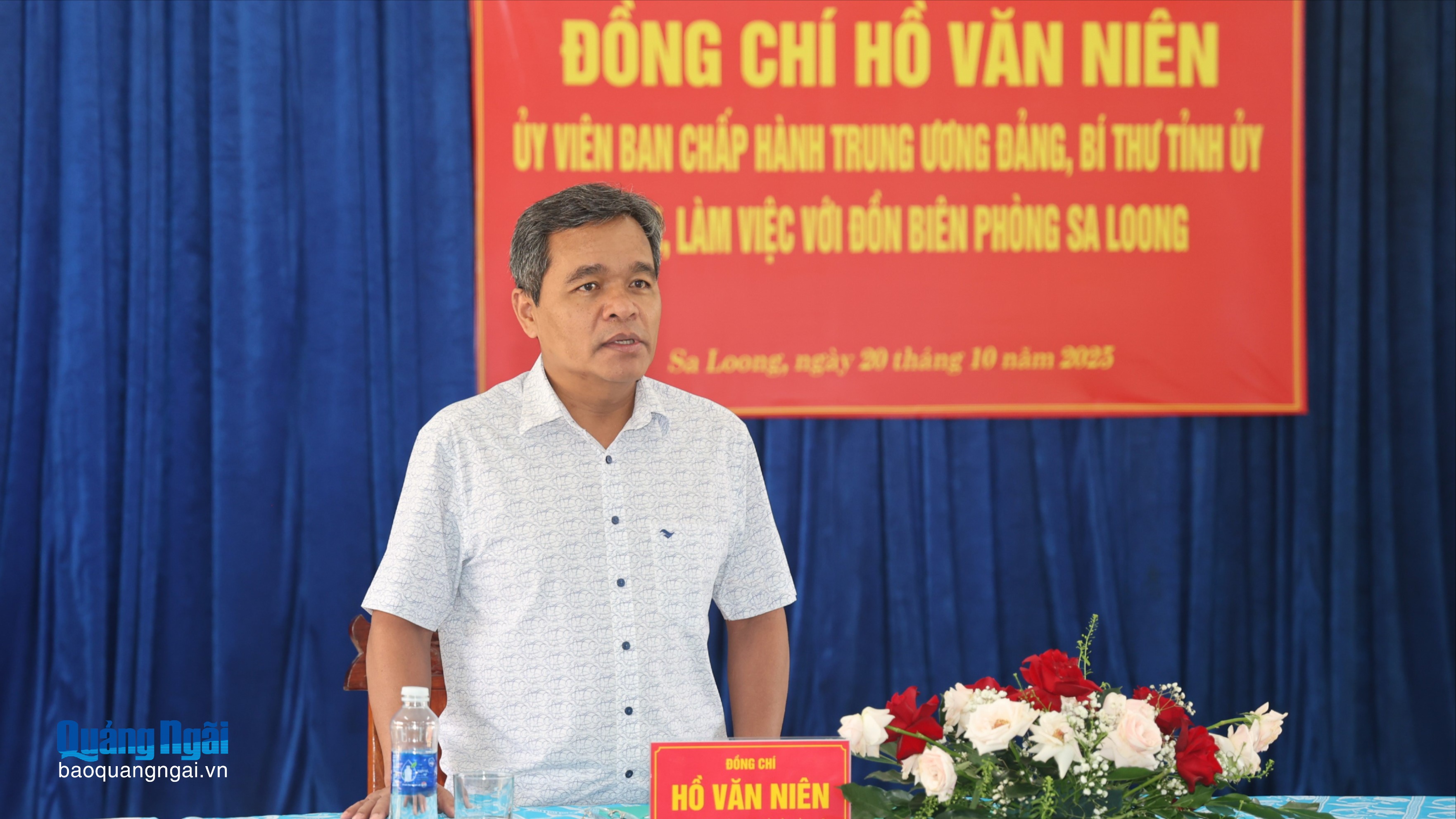 Tại buổi làm việc, sau khi nghe báo cáo của Chỉ huy Đồn Biên phòng Sa Loong, Bí thư Tỉnh ủy Hồ Văn Niên ghi nhận và đánh giá cao tinh thần trách nhiệm, sự nỗ lực của tập thể cán bộ, chiến sĩ trong thực hiện nhiệm vụ quản lý, bảo vệ biên giới; góp phần giữ vững an ninh chính trị, trật tự an toàn xã hội trên địa bàn được giao phụ trách.