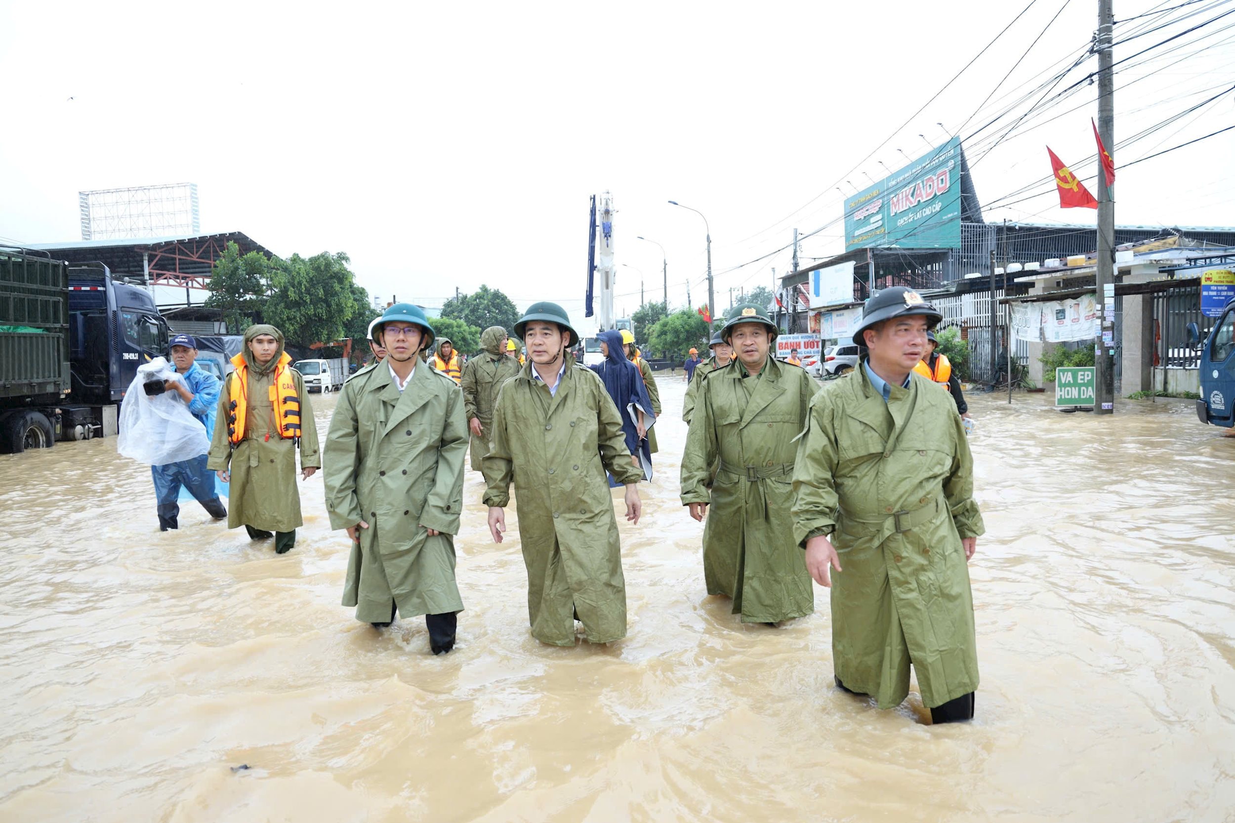 Bí thư Tỉnh ủy Nghiêm Xuân Thành cùng đoàn công tác vào thăm hỏi, động viên người dân vùng lũ.