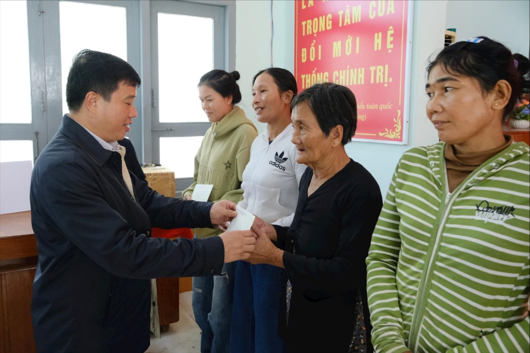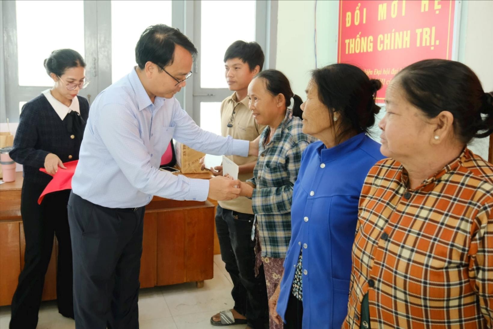 Đồng chí Nguyễn Minh, Phó Chủ tịch UBND tỉnh trao tặng quà cho người dân