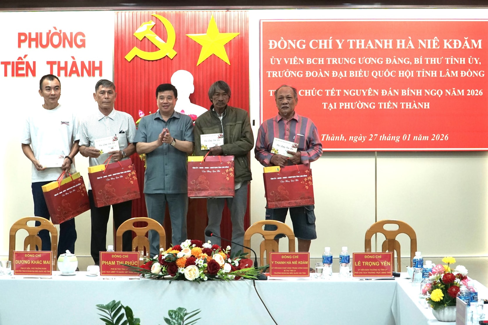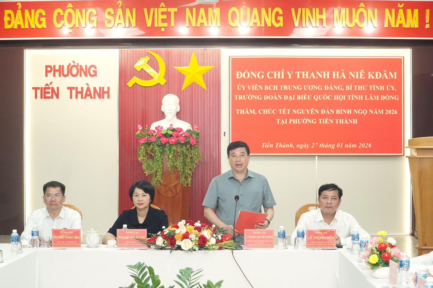 Phát biểu tại buổi thăm, Bí thư Tỉnh ủy Y Thanh Hà Niê Kđăm đánh giá cao nỗ lực và kết quả mà Đảng bộ, chính quyền, Nhân dân phường Tiến Thành đạt được trong năm 2025.