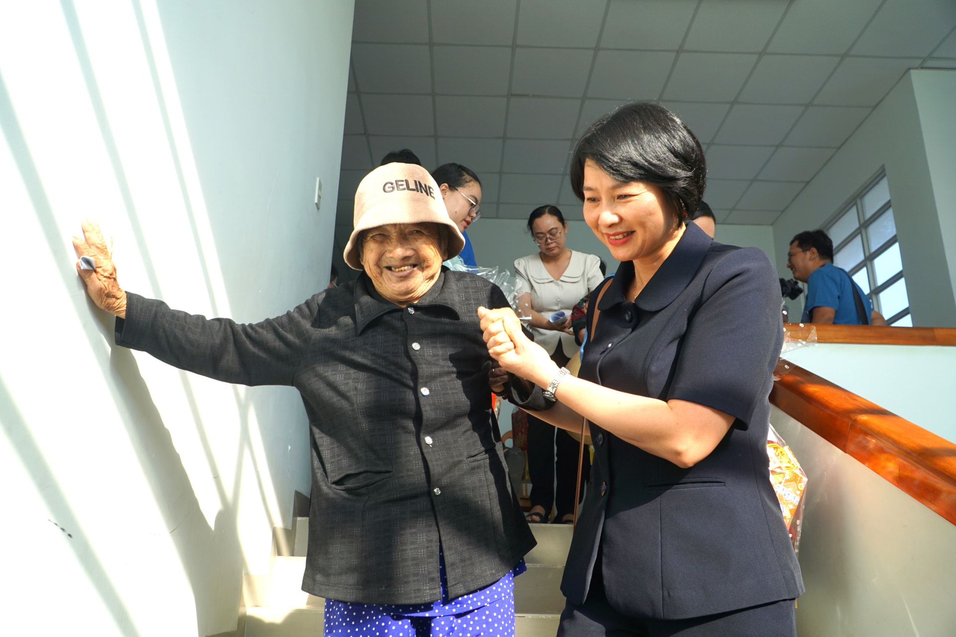 Đồng chí Phạm Thị Phúc, Phó Bí thư Tỉnh ủy, Chủ tịch Ủy ban MTTQ Việt Nam tỉnh Lâm Đồng thăm hỏi tình hình đời sống của bà con trên địa bàn phường