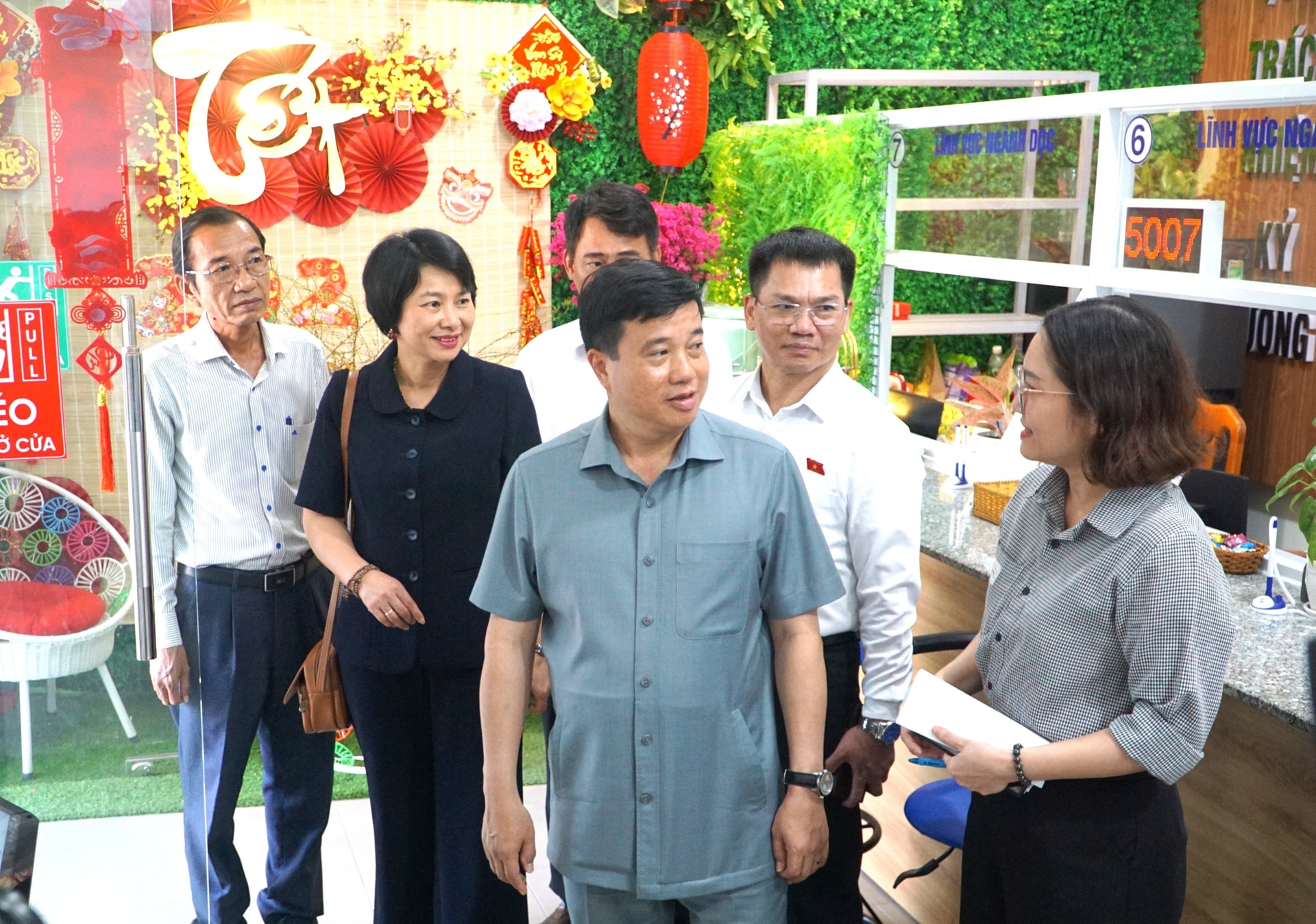 Các đồng chí lãnh đạo tỉnh thăm Trung tâm Phục vụ hành chính công phường Tiến Thành