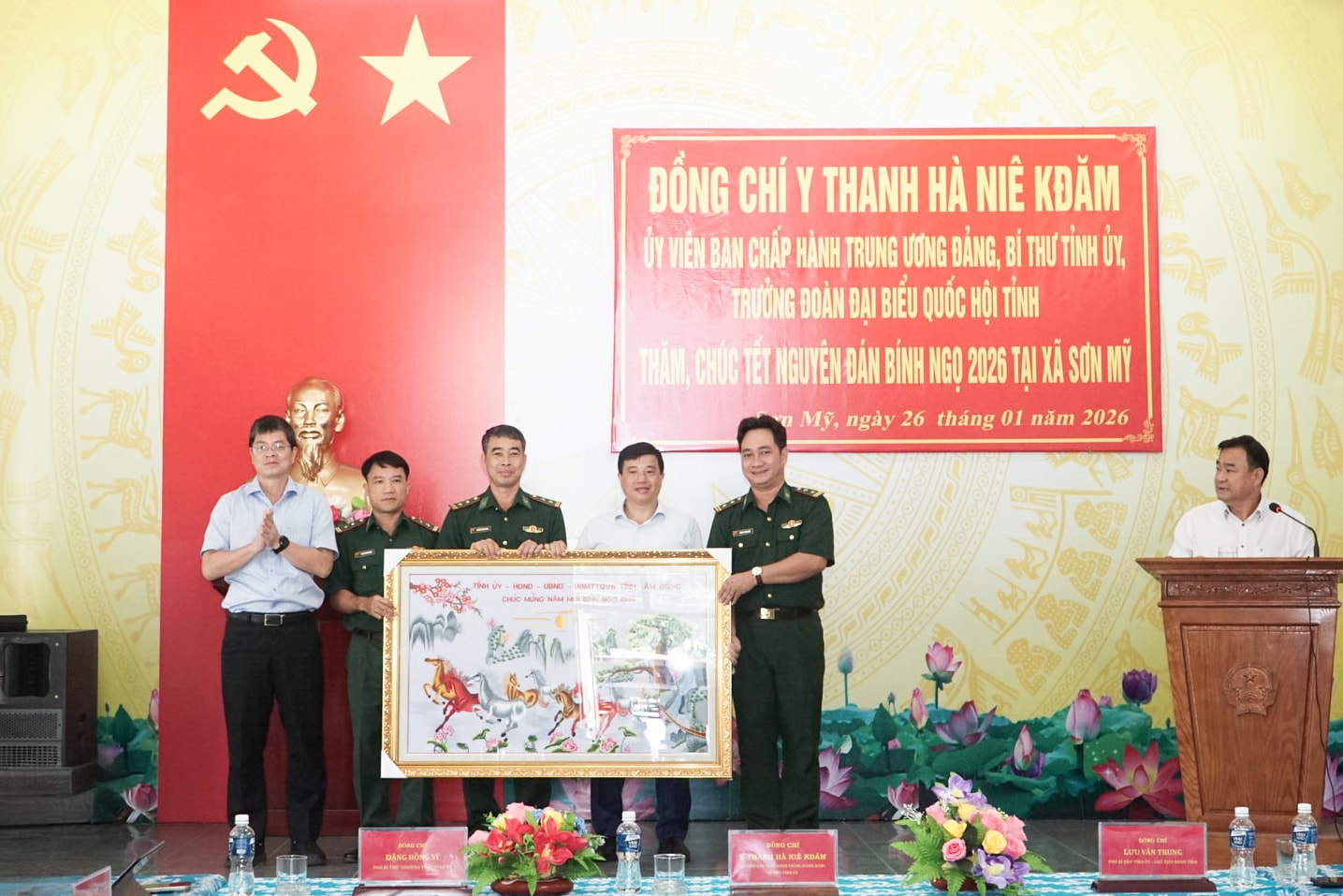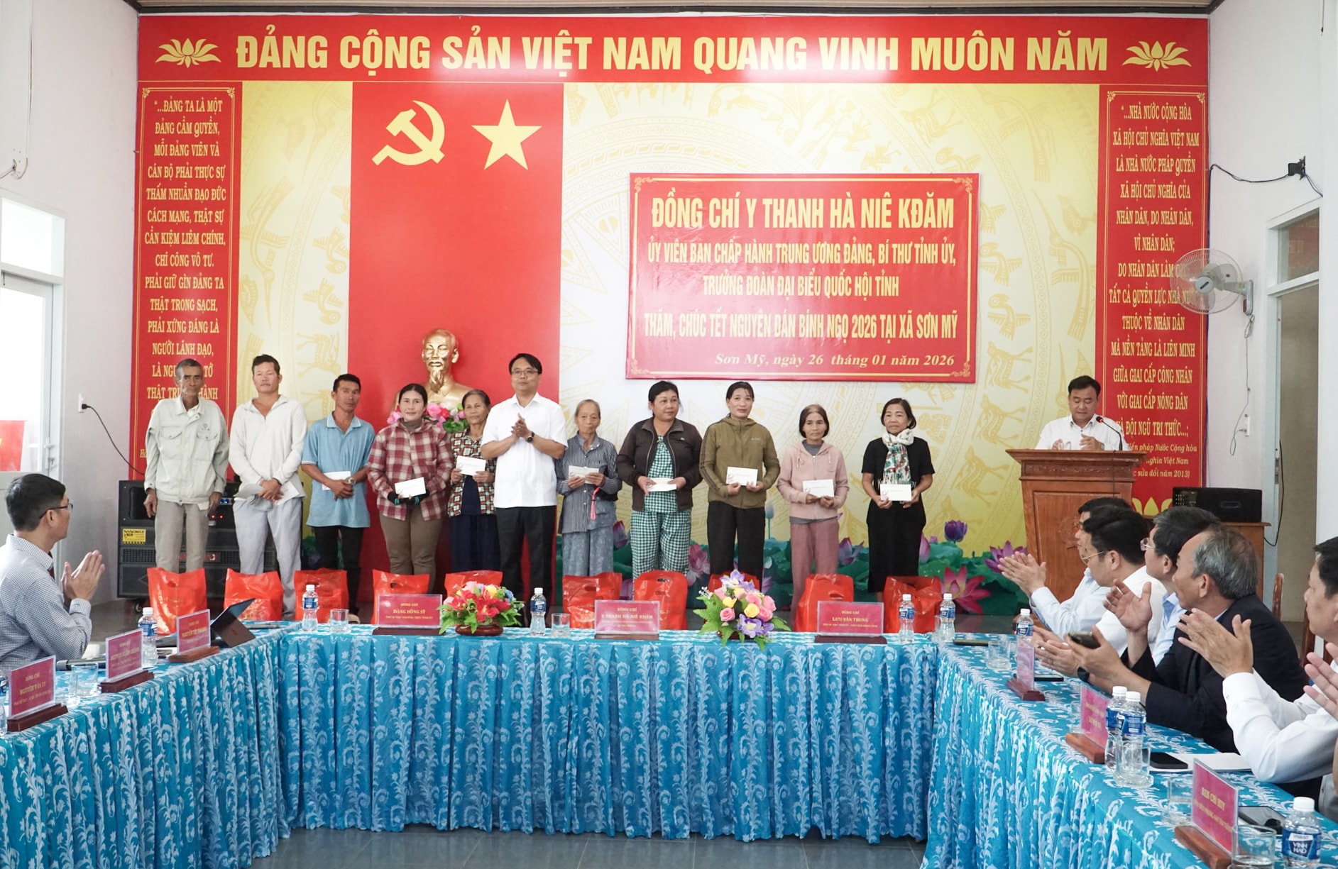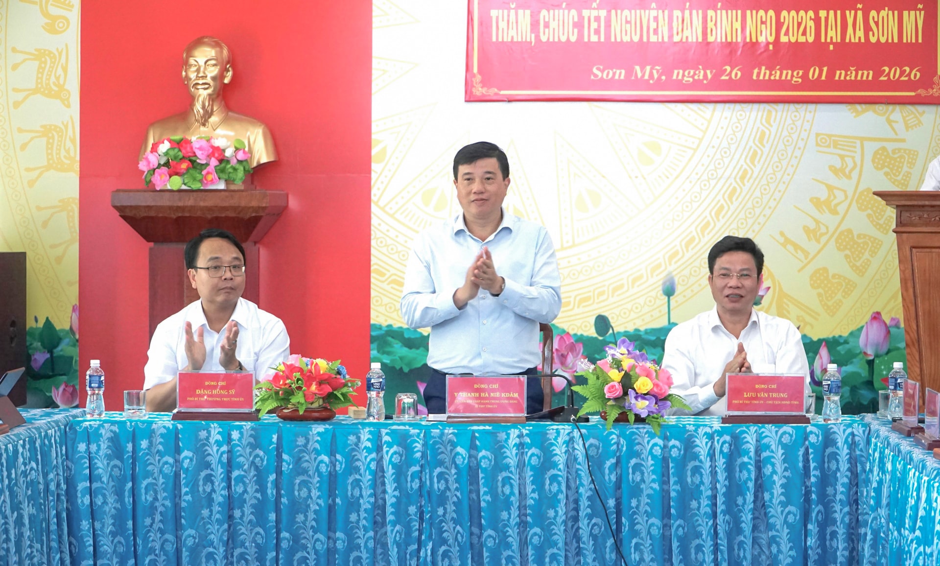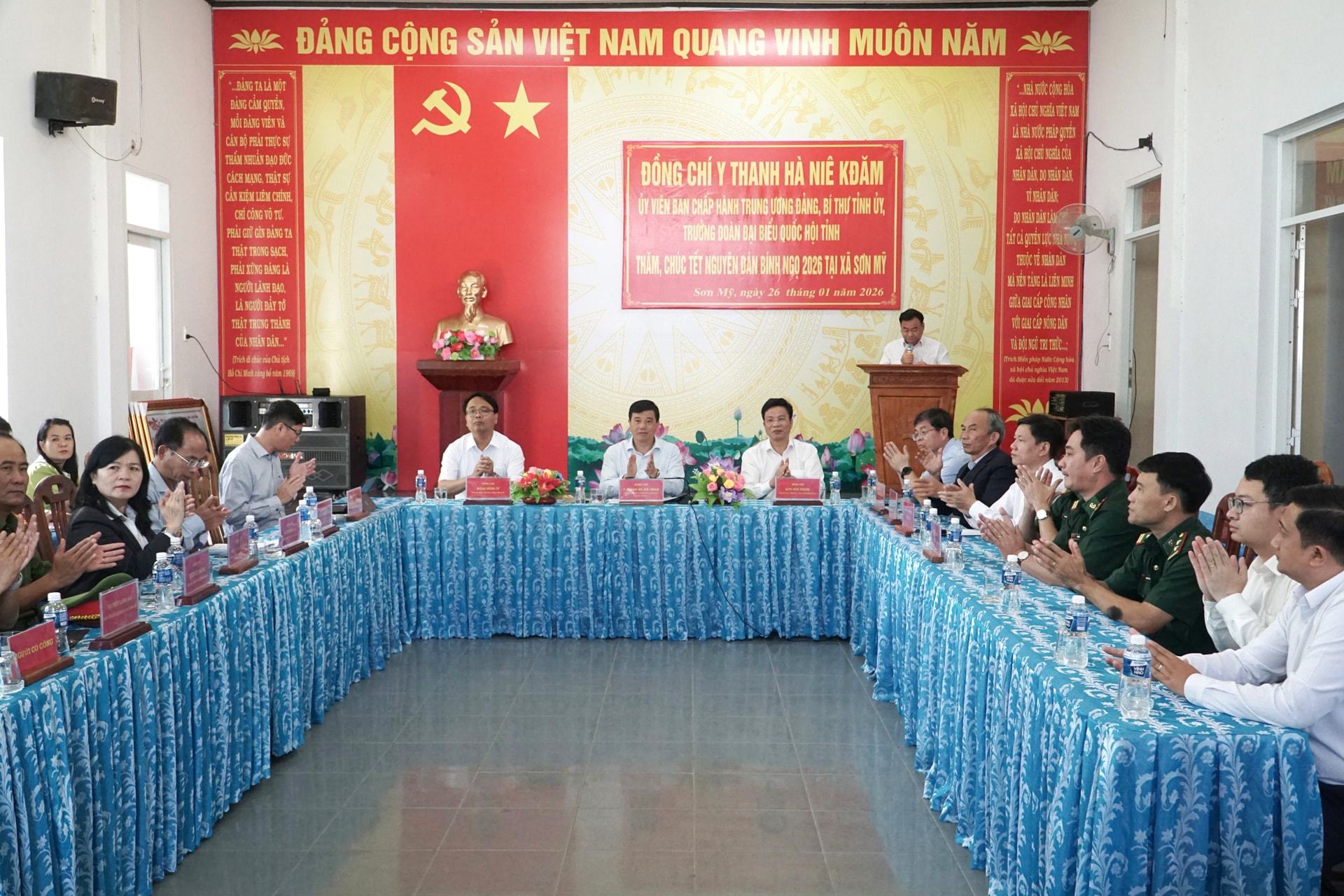 Phát biểu tại buổi đến thăm, Bí thư Tỉnh ủy Y Thanh Hà Niê Kđăm nhấn mạnh, năm 2026 là năm đầu triển khai thực hiện Nghị quyết Đại hội đại biểu toàn quốc lần thứ XIV của Đảng và Nghị quyết Đại hội Đảng bộ tỉnh nhiệm kỳ 2025–2030. Đồng chí đề nghị Đảng bộ, chính quyền và Nhân dân xã Sơn Mỹ tiếp tục phát huy tinh thần đoàn kết, chủ động, sáng tạo; tập trung phát triển kinh tế – xã hội gắn với chăm lo đời sống Nhân dân, bảo đảm quốc phòng – an ninh, xây dựng hệ thống chính trị vững mạnh.