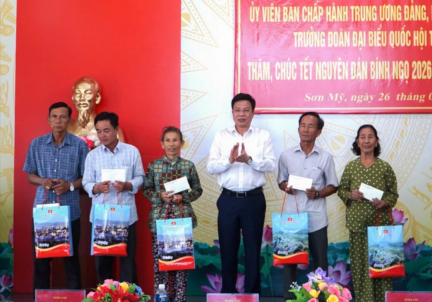 Nhân dịp năm mới, đồng chí Bí thư Tỉnh ủy gửi lời chúc Tết tới cán bộ, đảng viên và Nhân dân xã Sơn Mỹ, chúc địa phương bước sang năm Bính Ngọ 2026 với nhiều kết quả tích cực, đời sống Nhân dân ngày càng ổn định, nâng cao.
