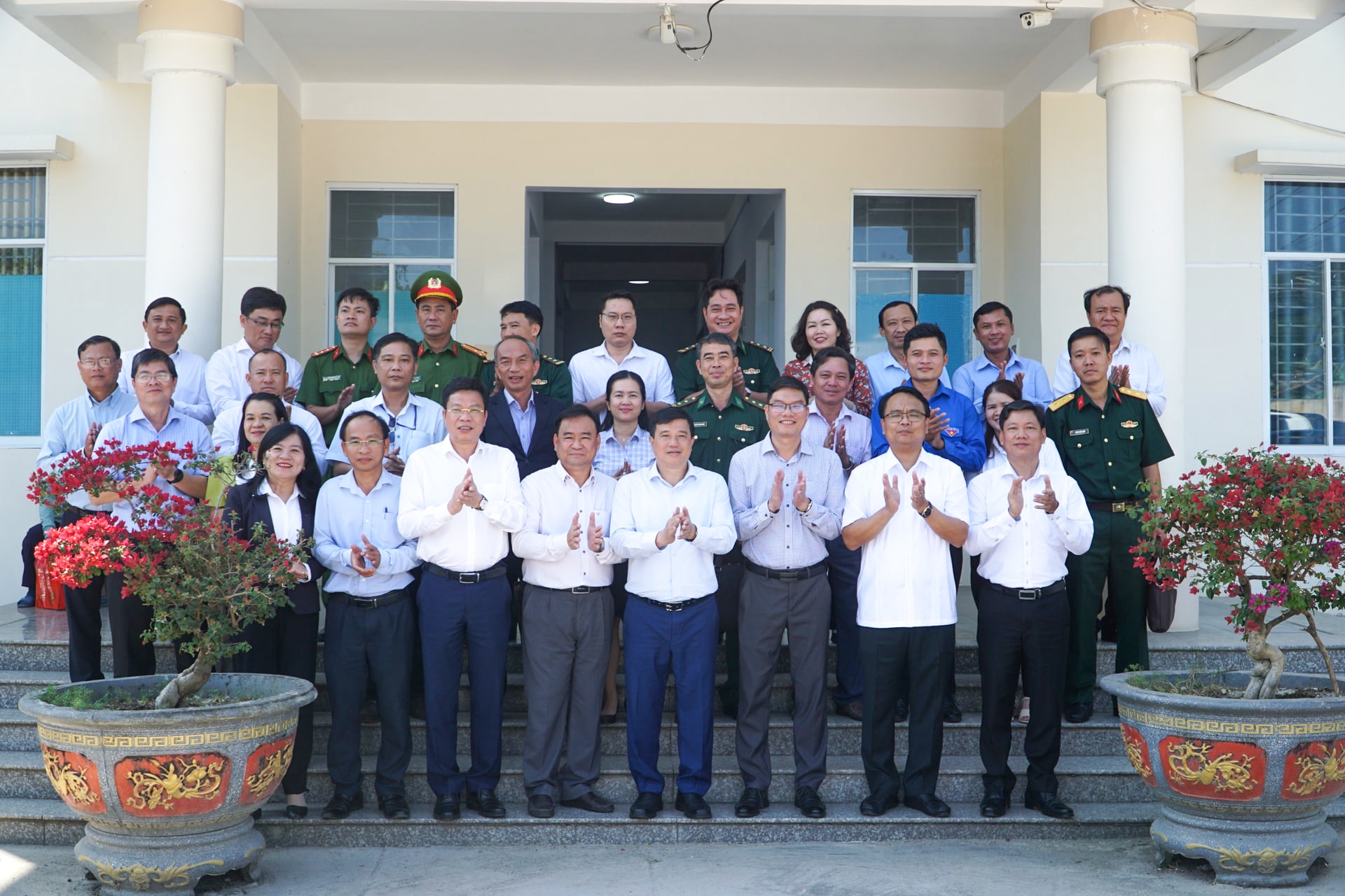 Lãnh đạo tỉnh và các sở, ngành Lâm Đồng chụp hình lưu niệm cùng cán bộ, công chức xã Sơn Mỹ