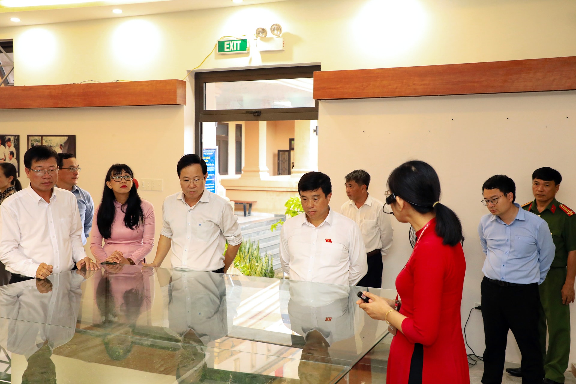 Bí thư Tỉnh ủy đã ghi sổ lưu niệm, thăm hỏi, động viên và chụp ảnh lưu niệm cùng cán bộ đang làm nhiệm vụ tại khu di tích.