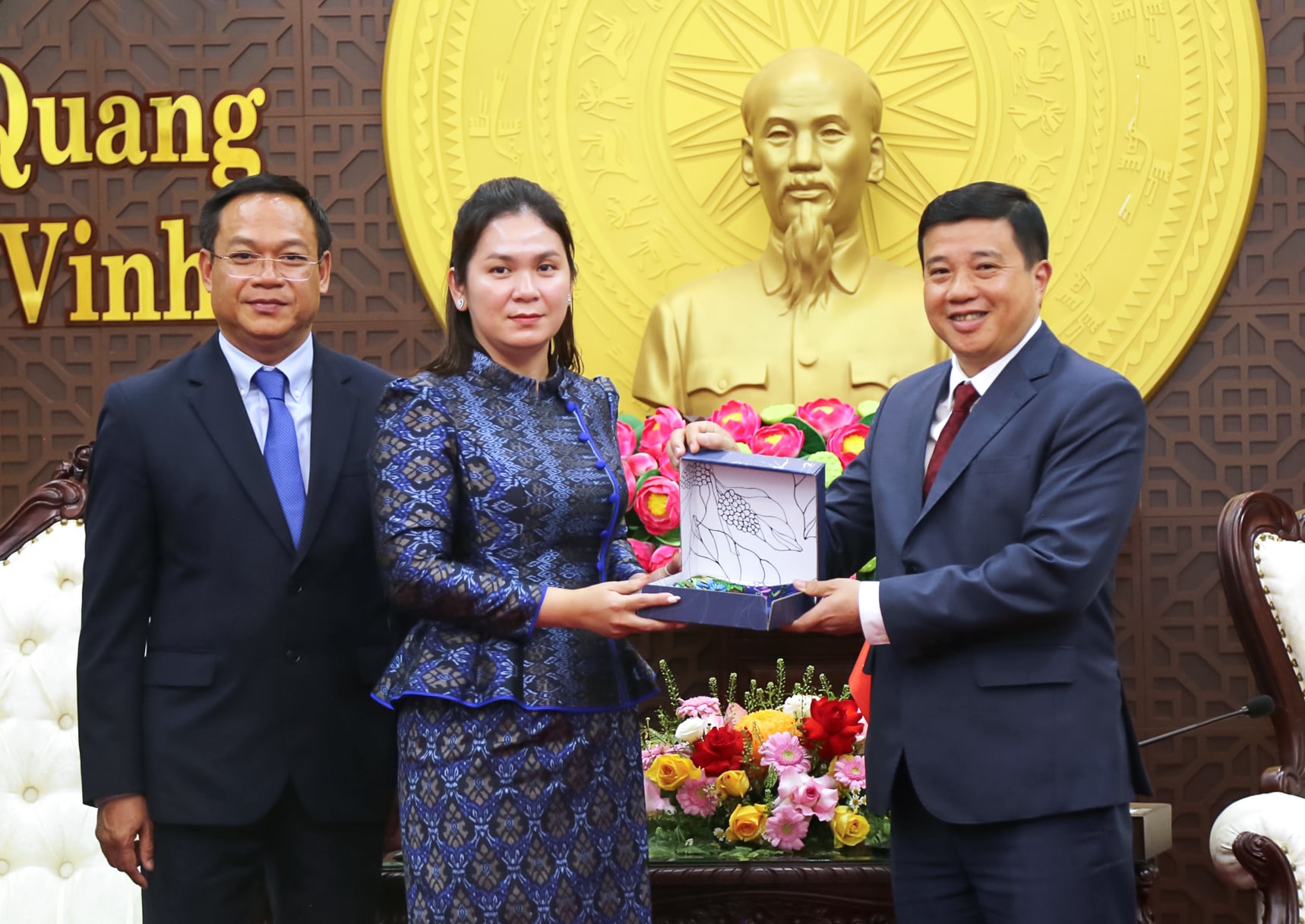 Lãnh đạo tỉnh Mondulkiri tặng lẵng hoa tươi thắm, với nhiều lời chúc ý nghĩa đến lãnh đạo tỉnh Lâm Đồng