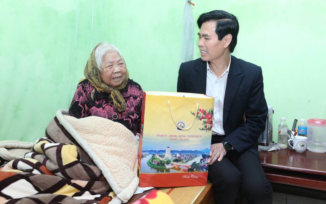Bí thư Tỉnh ủy Lạng Sơn ân cần thăm hỏi, chúc tết bà Bạch Thị Khôi, cán bộ tiền khởi nghĩa.