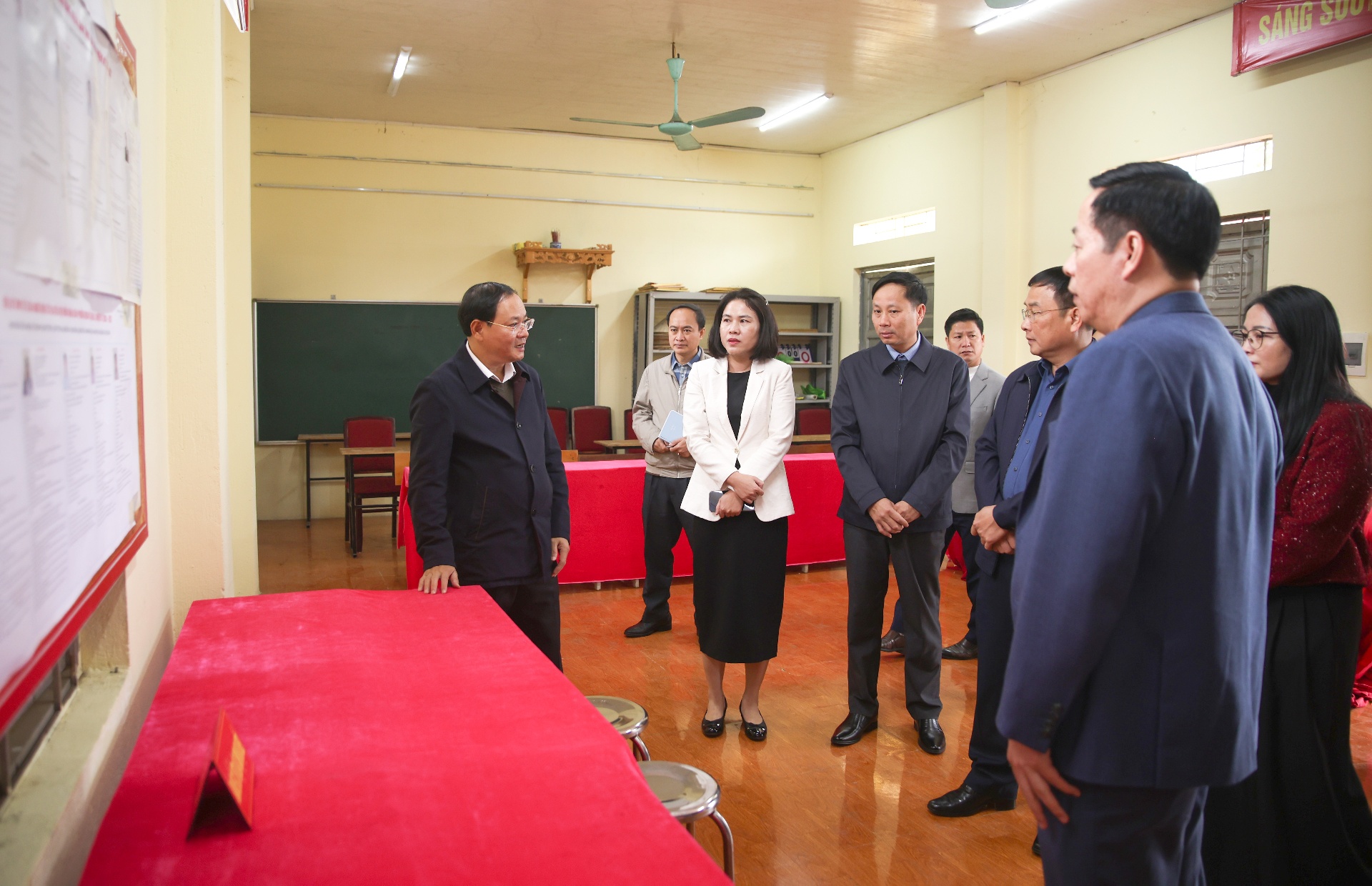 Tại các điểm kiểm tra, đồng chí Bí thư Tỉnh ủy Lê Minh Ngân đánh giá cao sự chỉ đạo sát sao của phường Đoàn Kết trong công tác chuẩn bị bầu cử đại biểu Quốc hội khóa XVI và đại biểu HĐND các cấp nhiệm kỳ 2026-2031; ghi nhận sự nỗ lực, cố gắng của các tổ dân phố đã chuẩn bị đầy đủ, chu đáo các điều kiện về cơ sở vật chất như: hòm phiếu, bàn hướng dẫn; trang trí khánh tiết; niêm yết danh sách cử tri và đại biểu ứng cử.