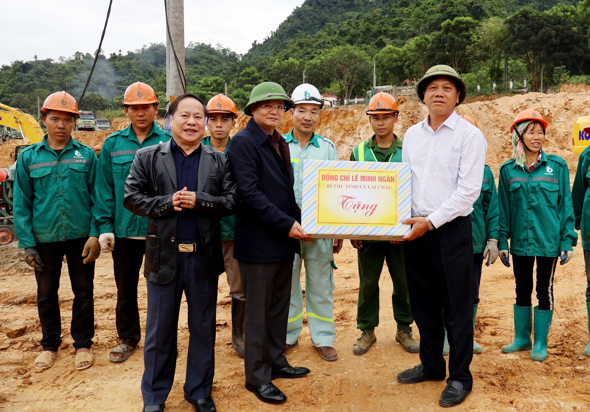 Dịp này, đồng chí Lê Minh Ngân đã trao quà của Tỉnh ủy – HĐND – UBND tỉnh nhằm động viên tinh thần công nhân làm việc trên công trường.