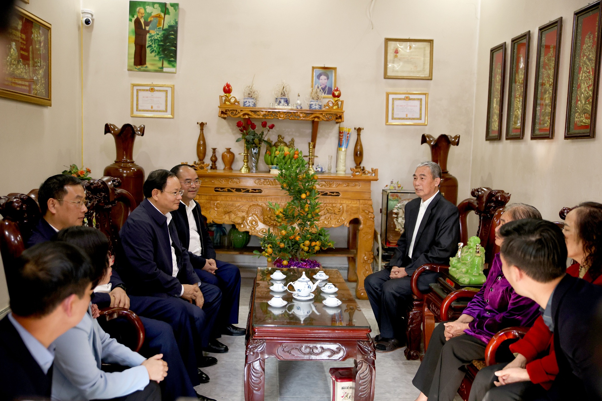 Tại các gia đình chính sách, người có công với Cách mạng, đảng viên cao tuổi trên địa bàn phường Tân Phong, Bí thư Tỉnh ủy Lê Minh Ngân bày tỏ lòng biết ơn, tri ân sâu sắc đối với thế hệ cha anh đã anh dũng hy sinh cho sự nghiệp giải phóng dân tộc, xây dựng và bảo vệ Tổ quốc; có những đóng góp thiết thực trong công cuộc xây dựng quê hương, đất nước. Đồng thời, mong muốn các gia đình chính sách, người có công, đảng viên cao tuổi tiếp tục phát huy truyền thống cách mạng, tuyên truyền, vận động con cháu thực hiện tốt chủ trương của đảng, chính sách pháp luật của Nhà nước, thi đua lao động sản xuất, phát triển kinh tế gia đình; cùng đoàn kết với nhân dân, góp sức xây dựng Lai Châu ngày càng phát triển giàu đẹp. Nhân dịp Tết Nguyên đán Bính Ngọ 2026, Bí thư Tỉnh ủy gửi lời chúc mừng năm mới, chúc các gia đình đón xuân vui khỏe, an toàn.