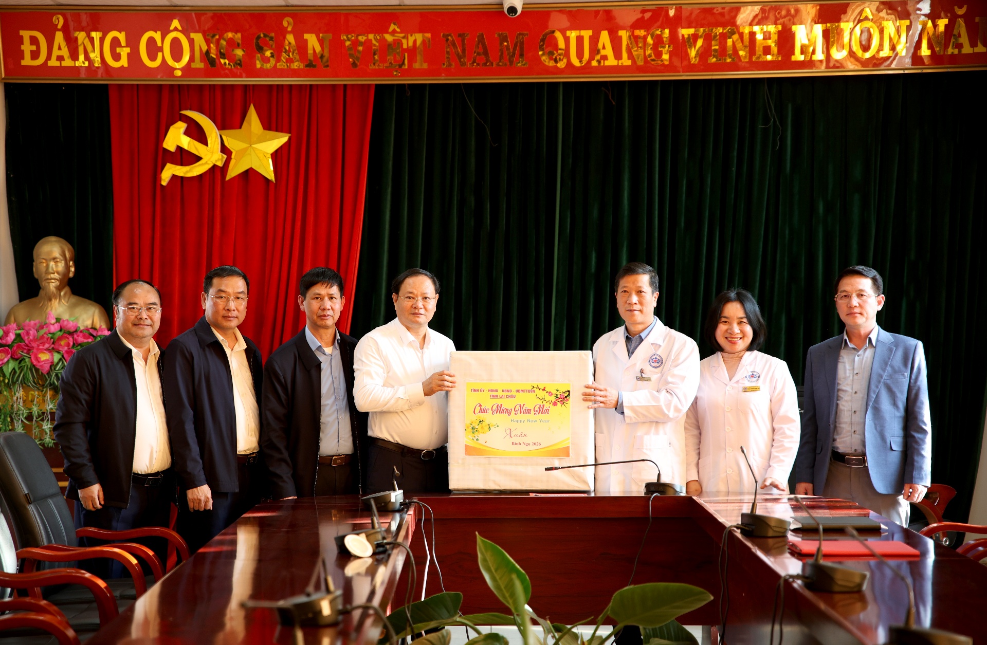 Nhân dịp Tết Nguyên đán Bính Ngọ 2026, Bí thư Tỉnh ủy Lê Minh Ngân tặng quà của Tỉnh ủy, HĐND, UBND, Ủy ban Mặt trận Tổ quốc Việt Nam tỉnh cho Bệnh viện Đa khoa tỉnh, động viên tinh thần đội ngũ y, bác sĩ nỗ lực thực hiện nhiệm vụ chăm sóc sức khỏe nhân dân, nhất là trong dịp tết.