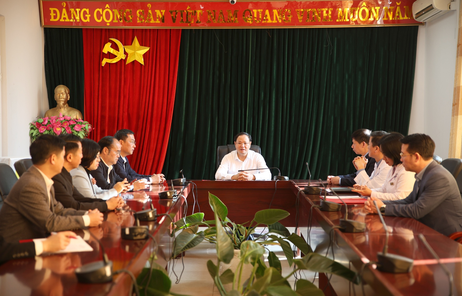 Tại Bệnh viện Đa khoa tỉnh, sau khi nghe đại diện đơn vị báo cáo công tác chăm sóc sức khỏe nhân dân; chuẩn bị trang thiết bị, thuốc men, sắp xếp đội ngũ y, bác sĩ trực tết, Bí thư Tỉnh ủy Lê Minh Ngân ghi nhận đánh giá cao sự nỗ lực, cố gắng, chủ động, linh hoạt của Bệnh viện trong thời gian qua đã phát huy Y đức để thực tốt nhiệm vụ mặc dù còn nhiều khó khăn thiếu thốn.
