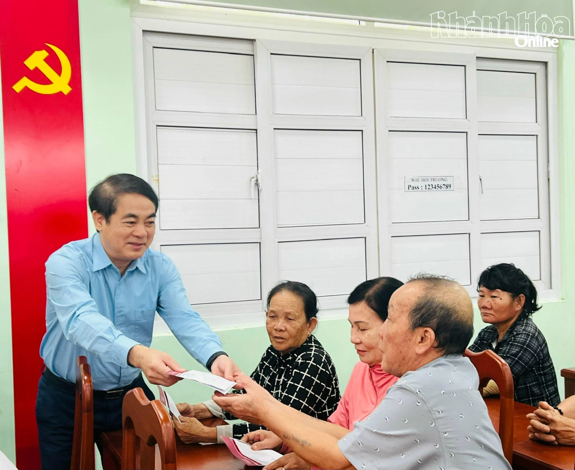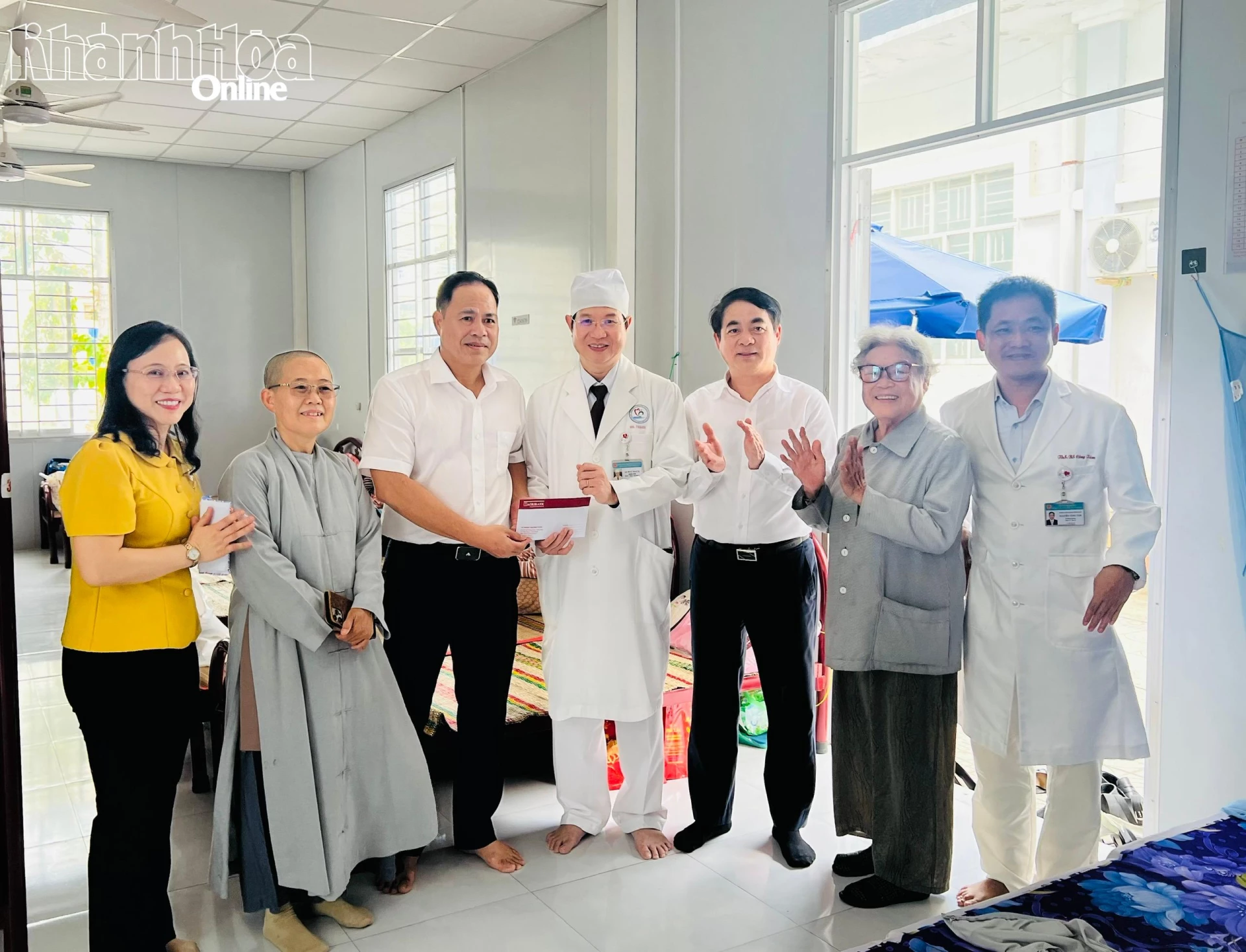 Bí thư Tỉnh ủy Nghiêm Xuân Thành và đại diện Agribank Chi nhánh Ninh Thuận trao 50 triệu đồng cho Bếp ăn từ thiện Hiểu và Thương tại Bệnh viện Đa khoa Ninh Thuận.