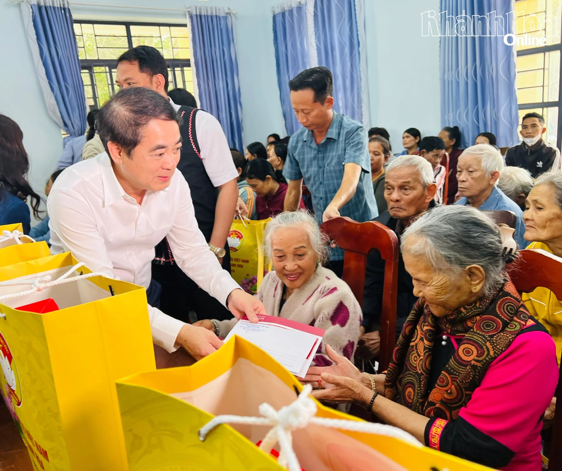 Nhân dịp này, đồng chí Nghiêm Xuân Thành đã trao 200 suất quà cho các hộ nghèo, hộ có hoàn cảnh khó khăn trên địa bàn 2 xã, mỗi suất trị giá 1,2 triệu đồng. Agribank Chi nhánh Khánh Hòa và Agribank Chi nhánh Ninh Thuận tặng 200 suất quà, trị giá 1 triệu đồng/suất cho các hộ nghèo, hộ có hoàn cảnh khó khăn trên địa bàn 2 xã (mỗi xã 100 suất).