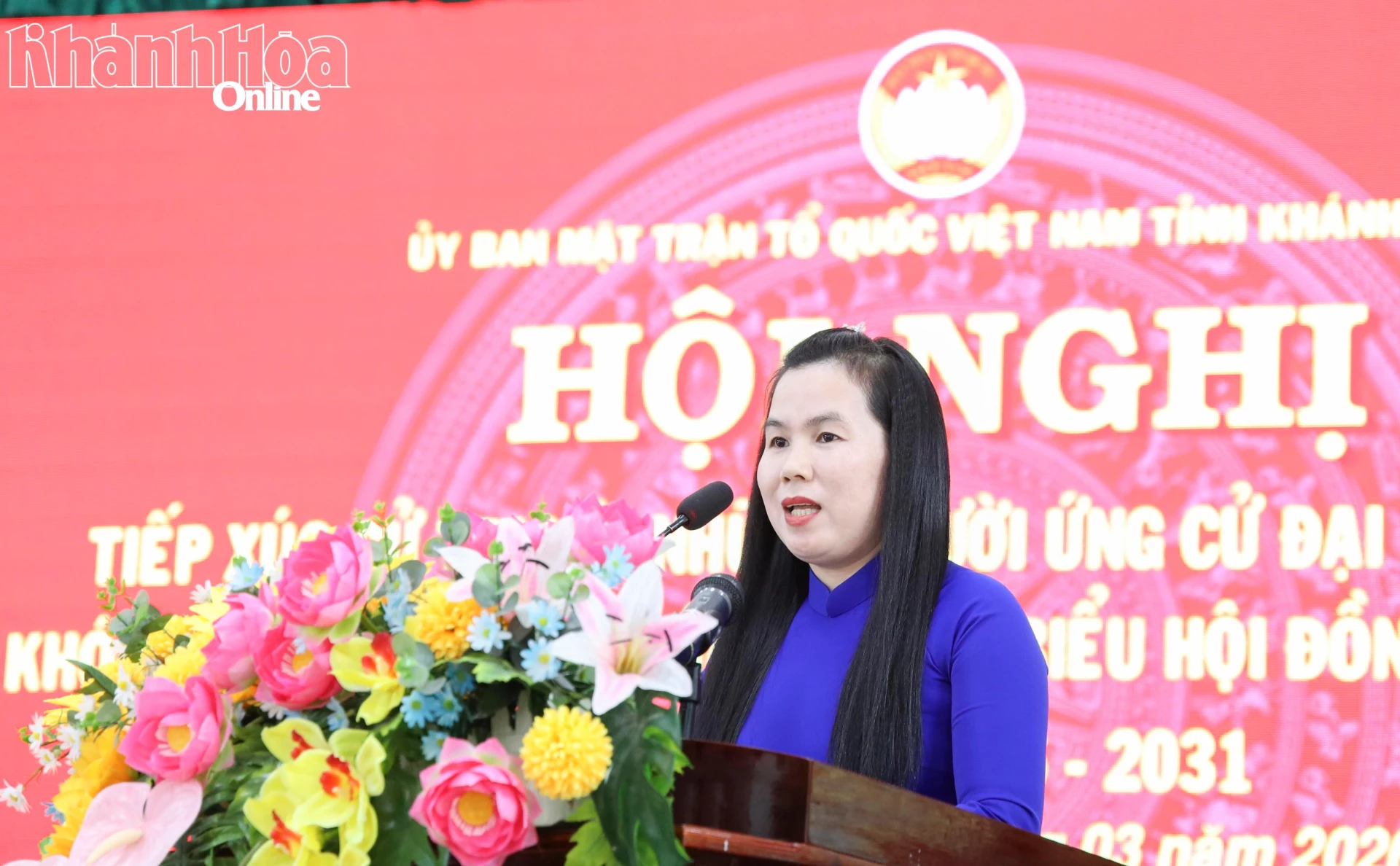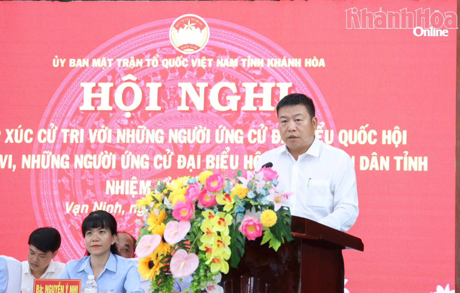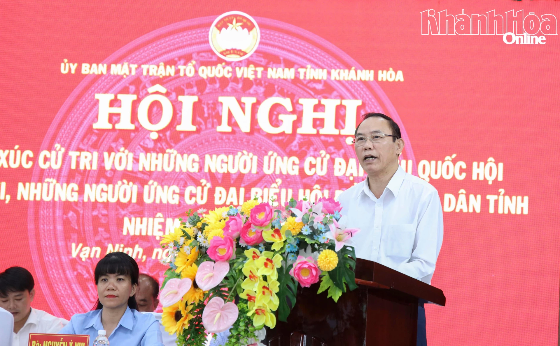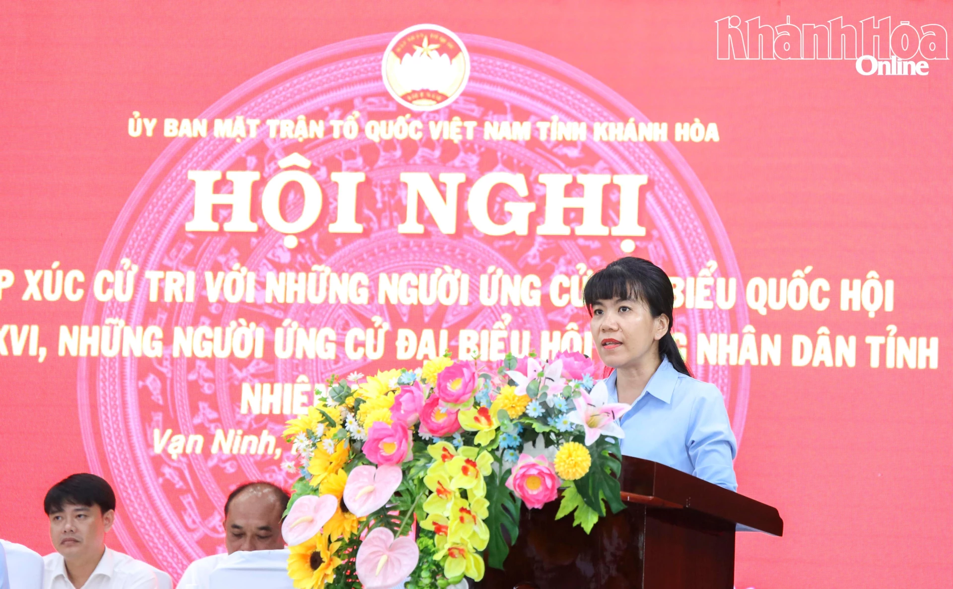 Tại hội nghị, đại diện Ủy ban MTTQ Việt Nam tỉnh đã thông tin tới cử tri tiểu sử tóm tắt của người ứng cử. Theo đó, đối với đại biểu Quốc hội khóa XVI, Đơn vị bầu cử số 1 có 5 người ứng cử gồm các ông, bà: Nghiêm Xuân Thành - Ủy viên Trung ương Đảng, Bí thư Tỉnh ủy; Phùng Đức Tiến - Thứ trưởng Bộ Nông nghiệp và Môi trường, Phó Chủ tịch Hội Thủy sản Việt Nam; Nguyễn Hữu Phước - Ủy viên Ban Thường vụ Tỉnh ủy, Giám đốc Công an tỉnh; Nguyễn Ý Nhi - Phó Trưởng ban Hữu nghị Liên hiệp các tổ chức hữu nghị tỉnh; Phạm Thị Hạ Quyên - Phó Chủ tịch Ủy ban MTTQ Việt Nam phường, Chủ tịch Hội Liên hiệp Phụ nữ phường Ninh Hòa.