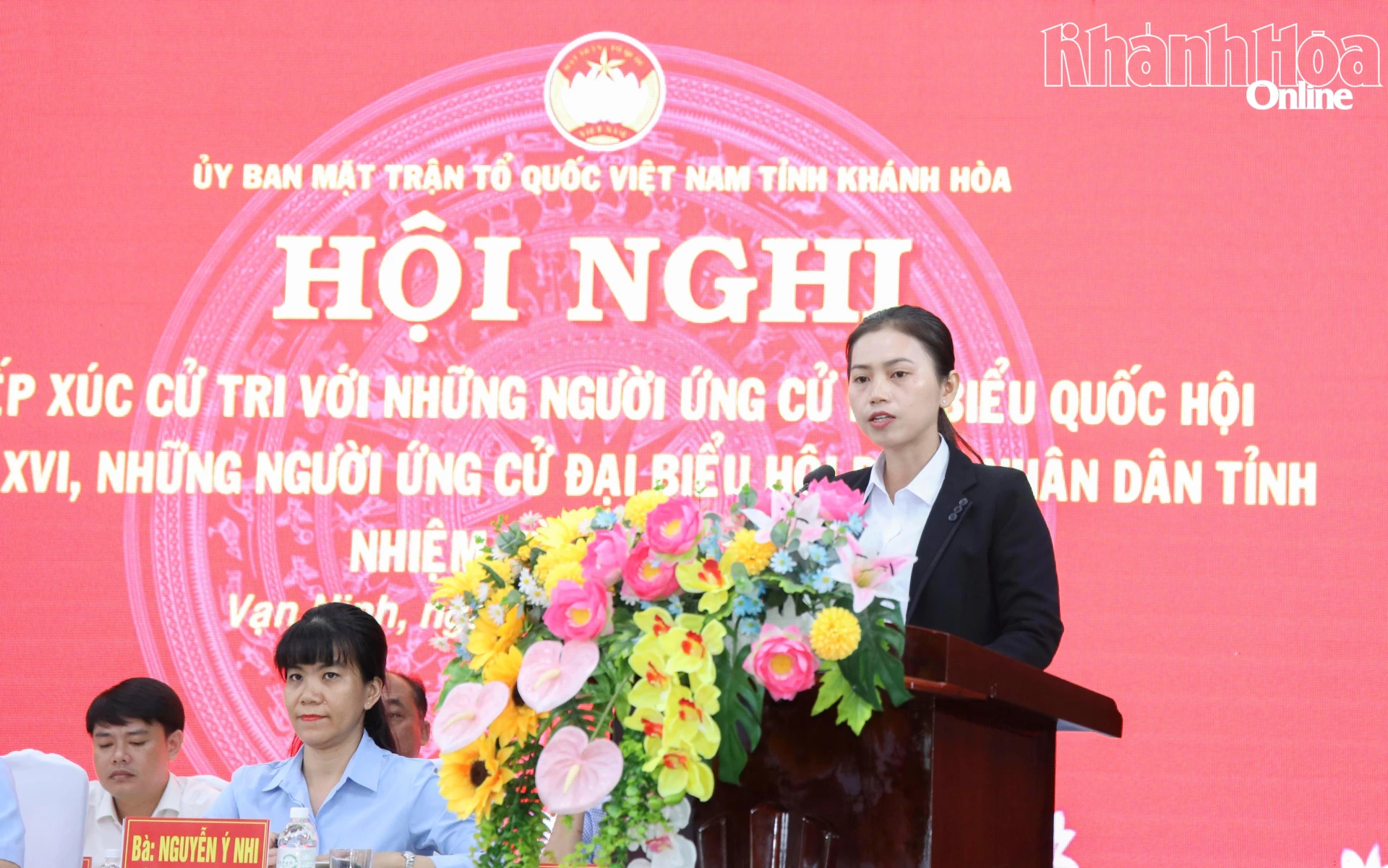 Trong không khí dân chủ, thẳng thắn và trách nhiệm, cử tri bày tỏ sự đồng tình, đánh giá cao chương trình hành động của các ứng cử viên, đặc biệt là chương trình hành động của đồng chí Bí thư Tỉnh ủy Nghiêm Xuân Thành; đồng thời bày tỏ tin tưởng với năng lực, kinh nghiệm và tinh thần trách nhiệm, các ứng cử viên sẽ thực hiện tốt cam kết, lắng nghe ý kiến Nhân dân, phản ánh trung thực tâm tư, nguyện vọng của cử tri và đóng góp tích cực vào sự phát triển chung của địa phương. Một số cử tri cũng mong muốn các ứng cử viên nếu trúng cử quan tâm đề xuất các cơ chế, chính sách liên quan đến đầu tư kết cấu hạ tầng, đặc biệt là hạ tầng giao thông kết nối; nhiều chính sách quan tâm đến việc chăm sóc sức khỏe Nhân dân, người cao tuổi; tăng cường thêm biên chế cho lực lượng công an cơ sở, đảm bảo an ninh trật tự, an toàn xã hội; có cơ chế, chính sách thu hút đầu tư vào Khu Kinh tế Vân Phong; nâng phụ cấp cho cán bộ thôn, tổ dân phố; quan tâm chăm lo đến các chế độ, chính sách cho các gia đình có công, thương binh, liệt sĩ; tiếp tục hỗ trợ để phụ nữ được tiếp cận các nguồn vốn chính sách phát triển kinh tế gia đình…