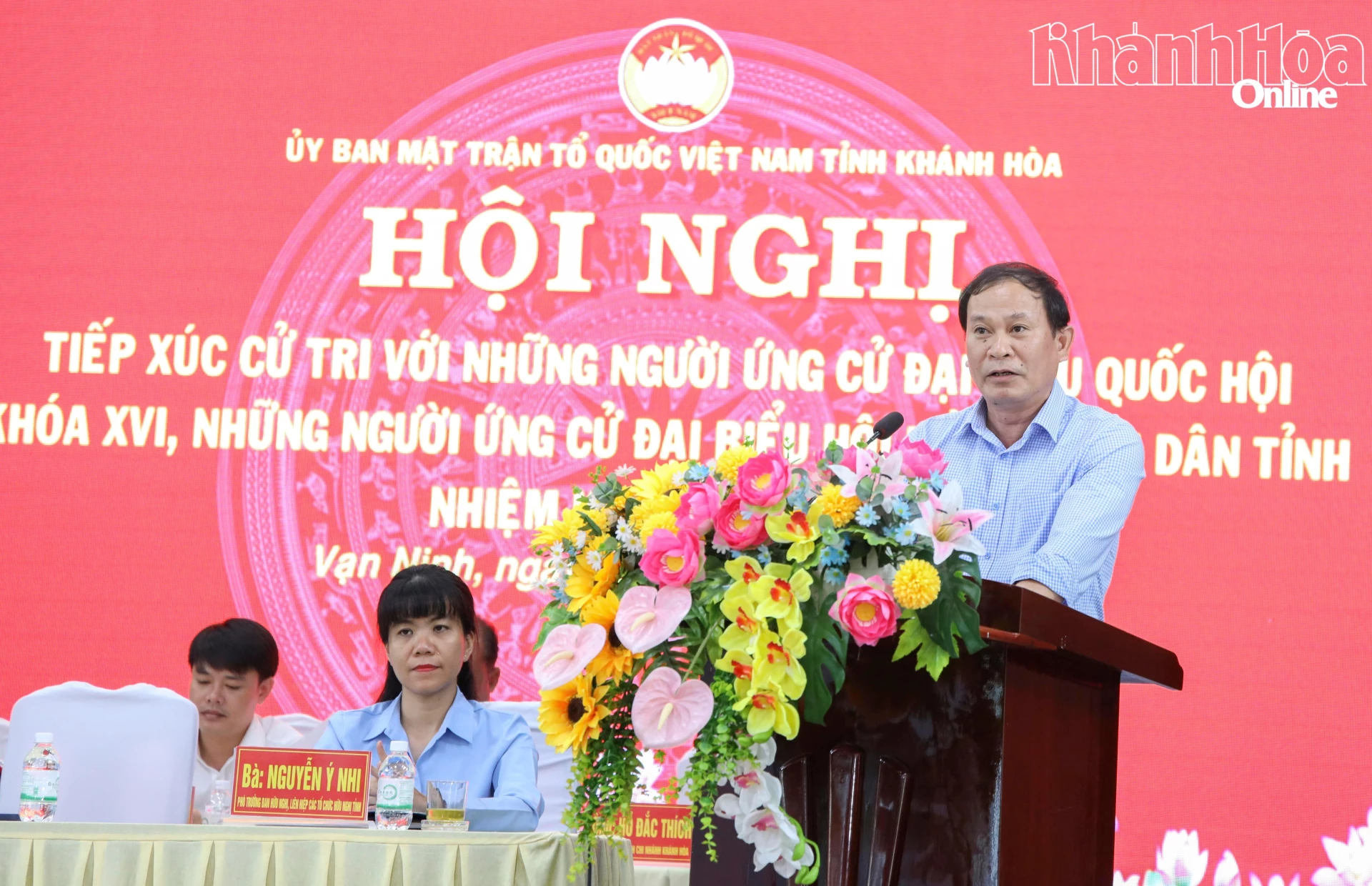 Những người ứng cử đại biểu Quốc hội khóa XVI và đại biểu HĐND tỉnh tiếp xúc cử tri xã Vạn Ninh.