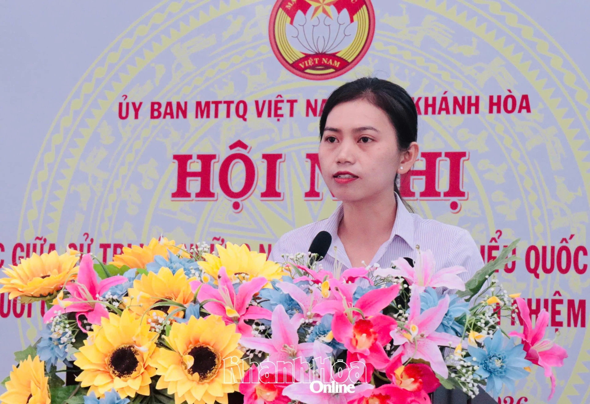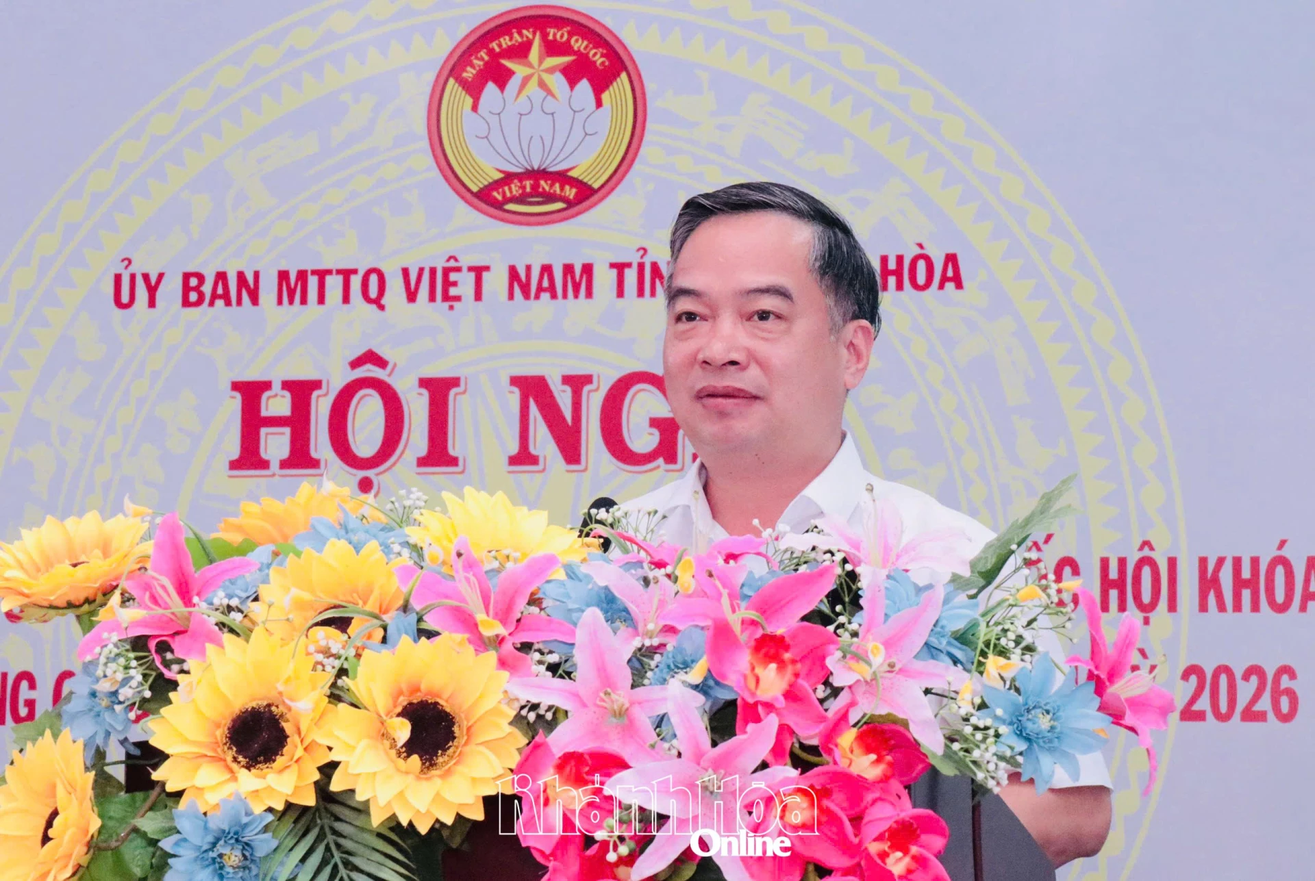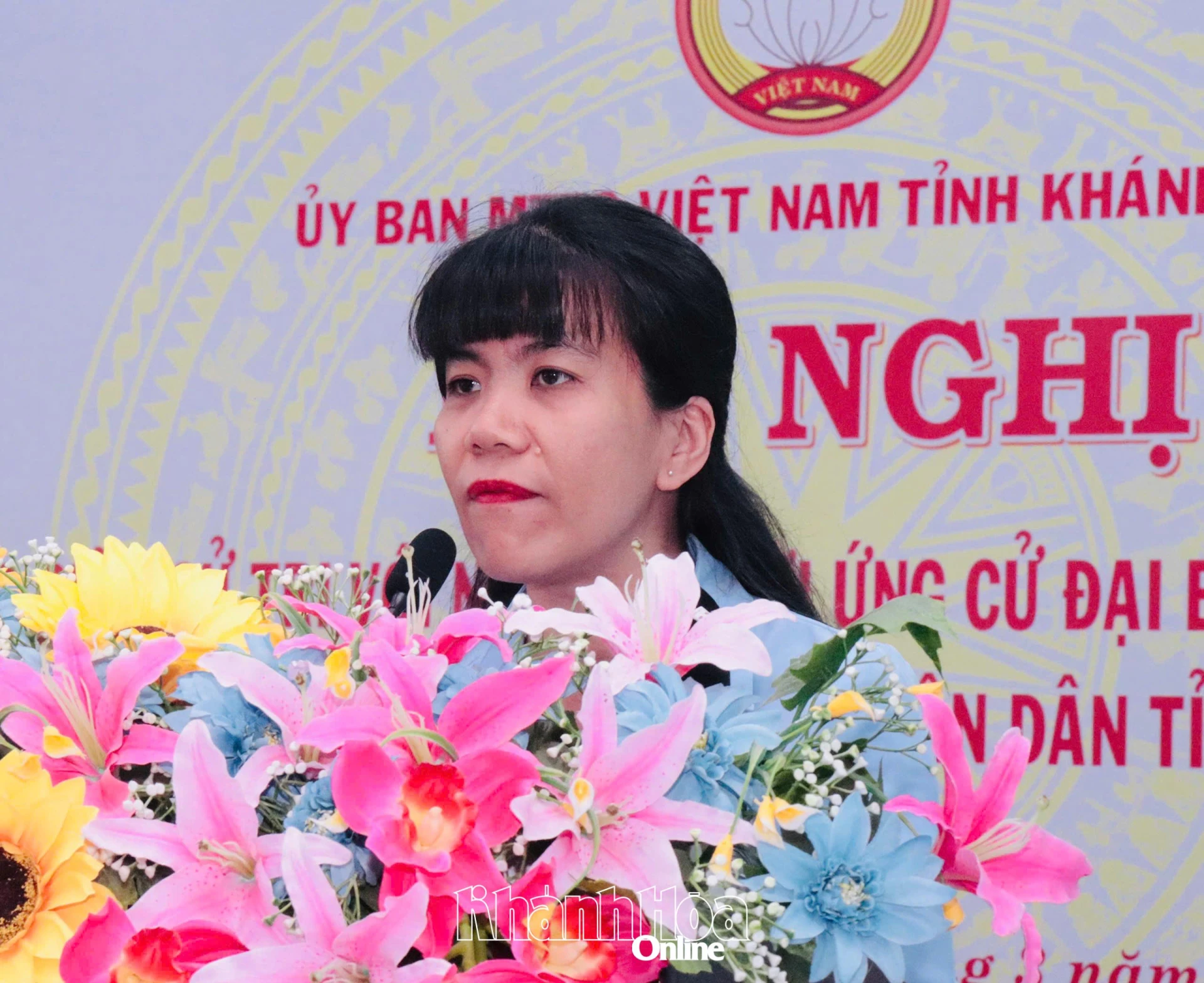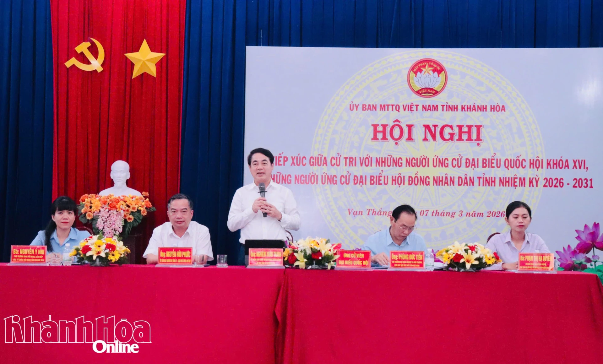 Tại hội nghị, đại diện Ban Thường trực Ủy ban MTTQ Việt Nam tỉnh đã thông tin tới cử tri tiểu sử tóm tắt của những người ứng cử đại biểu Quốc hội khóa XVI, Đơn vị bầu cử số 1, gồm các ông, bà: Nghiêm Xuân Thành - Ủy viên Trung ương Đảng, Bí thư Tỉnh ủy; Phùng Đức Tiến - Ủy viên Ban Thường vụ Đảng ủy, Thứ trưởng Bộ Nông nghiệp và Môi trường, Phó Chủ tịch Hội Thủy sản Việt Nam; Thiếu tướng Nguyễn Hữu Phước - Ủy viên Ban Thường vụ Tỉnh ủy, Bí thư Đảng ủy, Giám đốc Công an tỉnh; Phạm Thị Hạ Quyên - Phó Chủ tịch Ủy ban MTTQ Việt Nam phường, Chủ tịch Hội Liên hiệp Phụ nữ phường Ninh Hòa; Nguyễn Ý Nhi - Phó Trưởng ban Hữu nghị, Liên hiệp Các tổ chức hữu nghị Khánh Hòa.