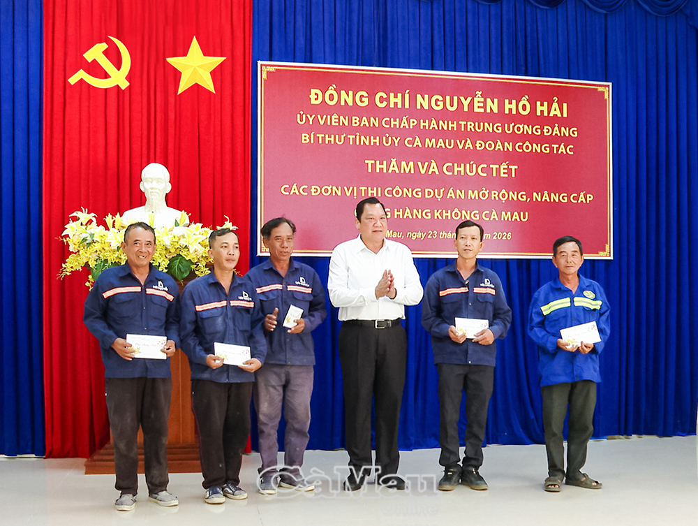 Đoàn đến thăm, chúc Tết cán bộ, nhân viên, người lao động đang làm việc tại Dự án đường bộ cao tốc đoạn Cà Mau - Cái Nước (xã Khánh An) và Dự án mở rộng, nâng cấp Cảng hàng không Cà Mau (phường Tân Thành).