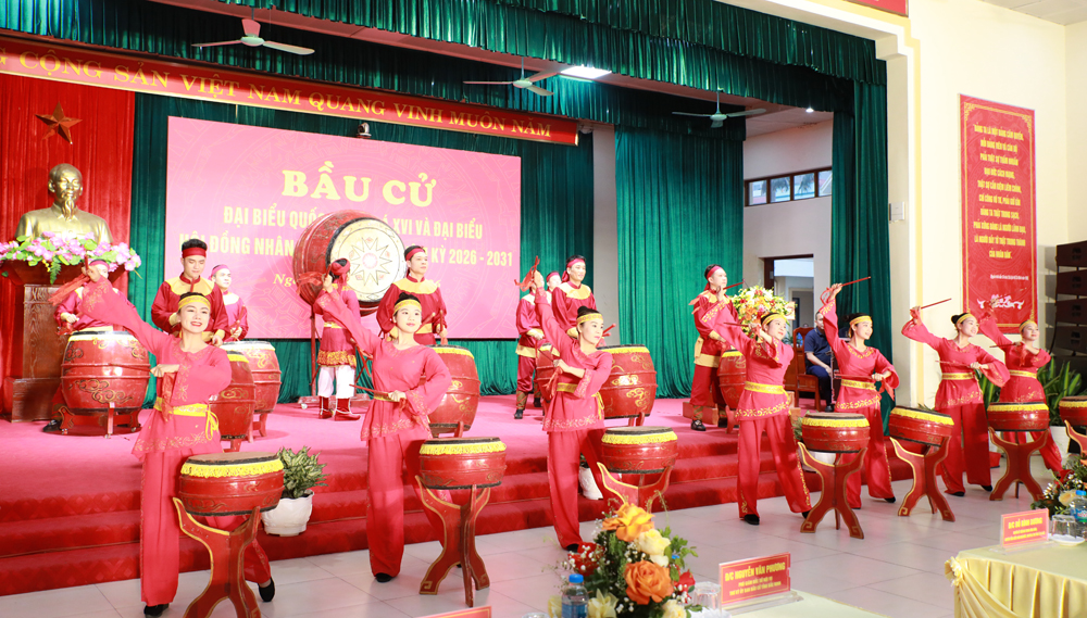 Màn trống khai hội trước giờ khai mạc bầu cử tại Tổ bầu cử số 2, phường Bắc Giang.