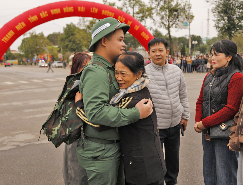 Các tân binh chào tạm biệt người thân, quê hương lên đường thực hiện nghĩa vụ thiêng liêng với Tổ quốc.