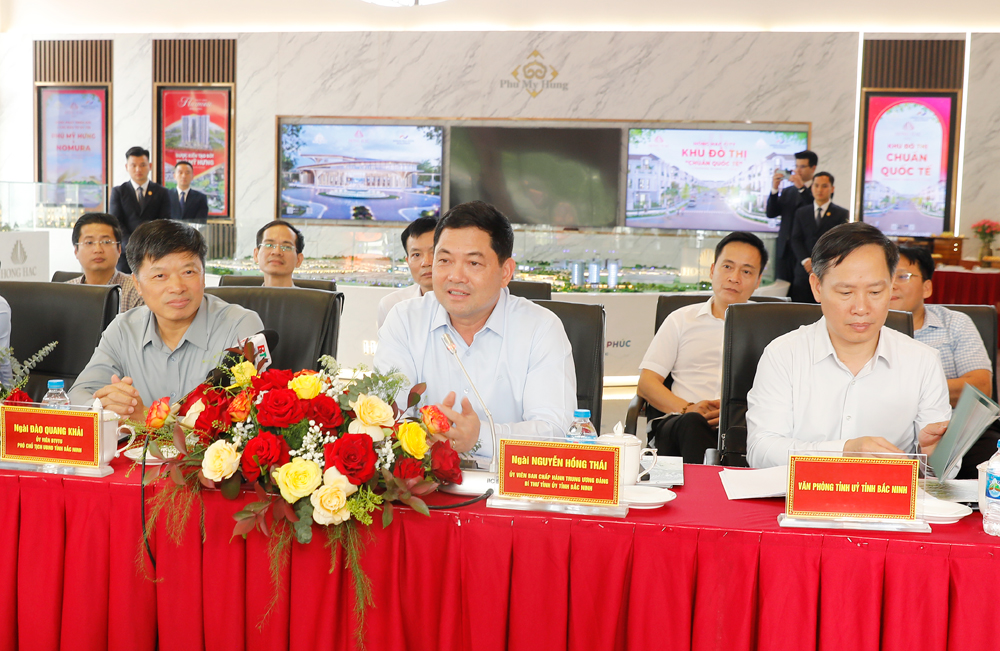 Phát biểu tại buổi làm việc, Bí thư Tỉnh ủy Nguyễn Hồng Thái đánh giá cao phương châm, uy tín kinh doanh của Phú Mỹ Hưng; đồng thời thông tin về mục tiêu tỉnh Bắc Ninh phát triển thành thành phố trực thuộc Trung ương trước năm 2030; kết quả phát triển kinh tế - xã hội của tỉnh những tháng đầu năm 2026. Hiện nay, Bắc Ninh đang nỗ lực triển khai dự án Cảng hàng không quốc tế Gia Bình và các dự án liên quan, đặc biệt là hệ thống hạ tầng giao thông kết nối các tỉnh, thành phố trong khu vực và khu đô thị lớn của tỉnh.