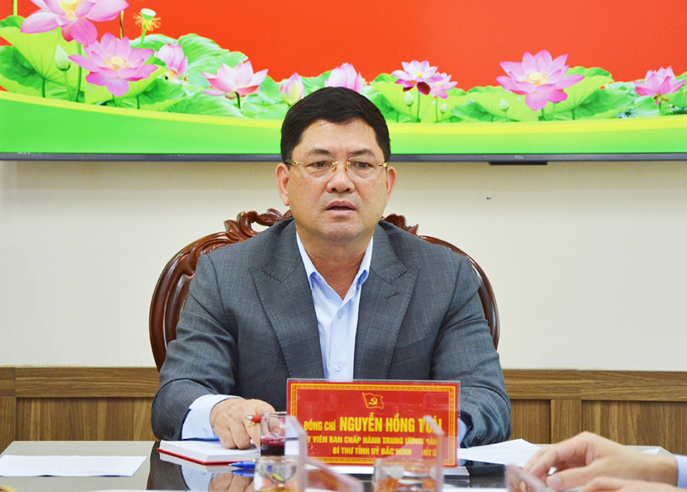 Bí thư Tỉnh ủy Nguyễn Hồng Thái phát biểu chỉ đạo và trao đổi, làm rõ những đề xuất, kiến nghị của phường Võ Cường.