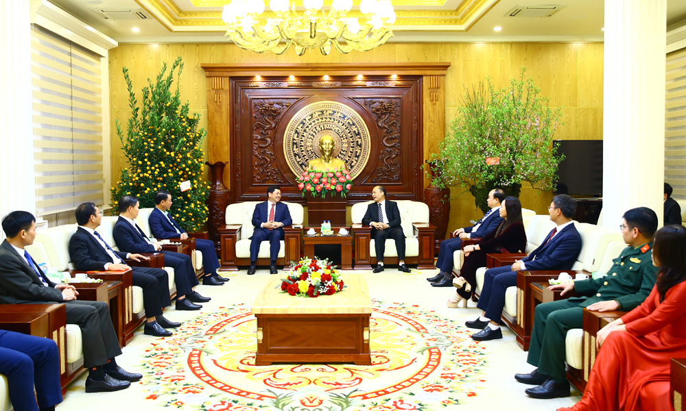 Quang cảnh buổi thăm, chúc mừng năm mới của đồng chí Bí thư Tỉnh ủy.