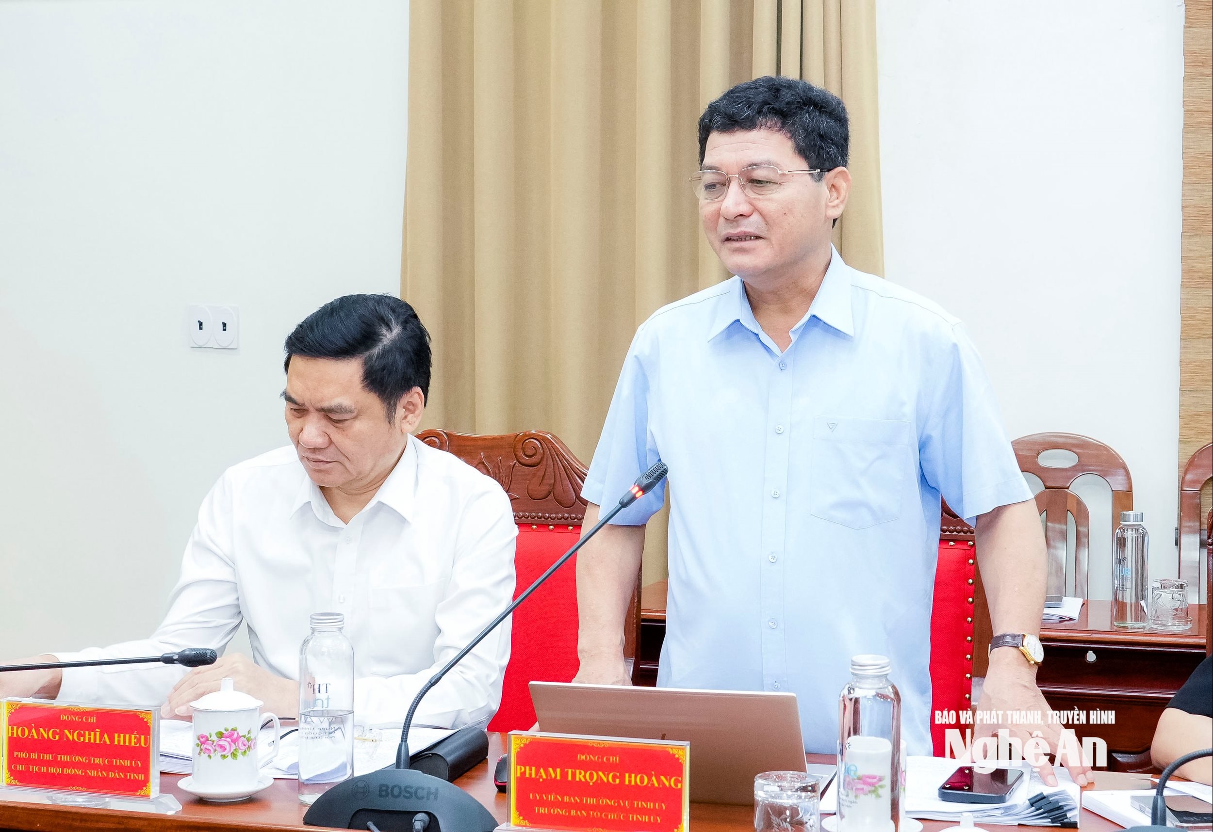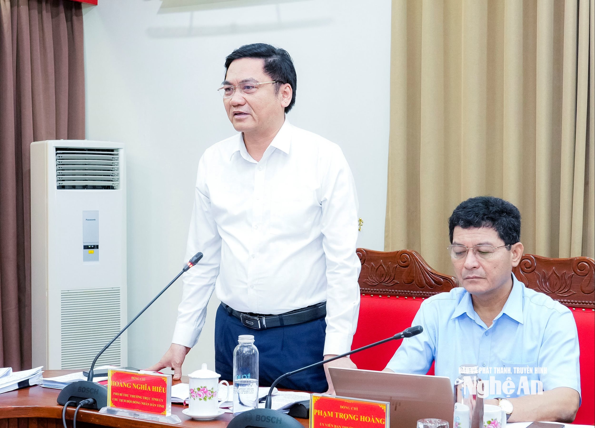 Phó Bí thư Thường trực Tỉnh ủy, Chủ tịch HĐND tỉnh Hoàng Nghĩa Hiếu phát biểu. Ảnh: Phạm Bằng