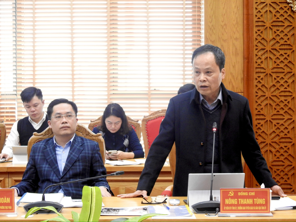 Trưởng Ban Tuyên giáo và Dân vận Tỉnh ủy Nông Thanh Tùng phát biểu tại cuộc họp.
