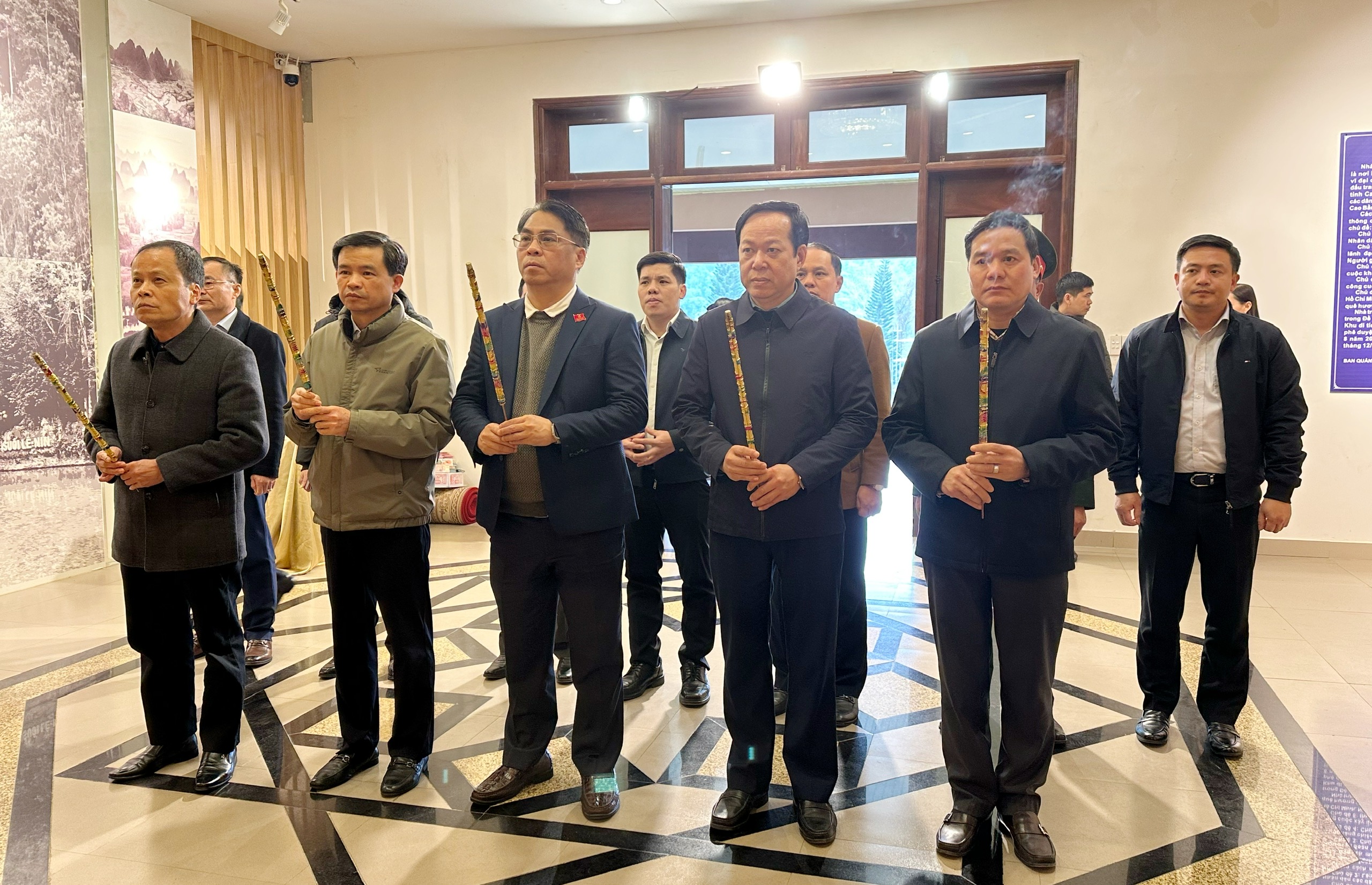 Trước đó, đoàn công tác đến dâng hương tưởng niệm Chủ tịch Hồ Chí Minh tại Khu di tích Quốc gia đặc biệt Pác Bó.