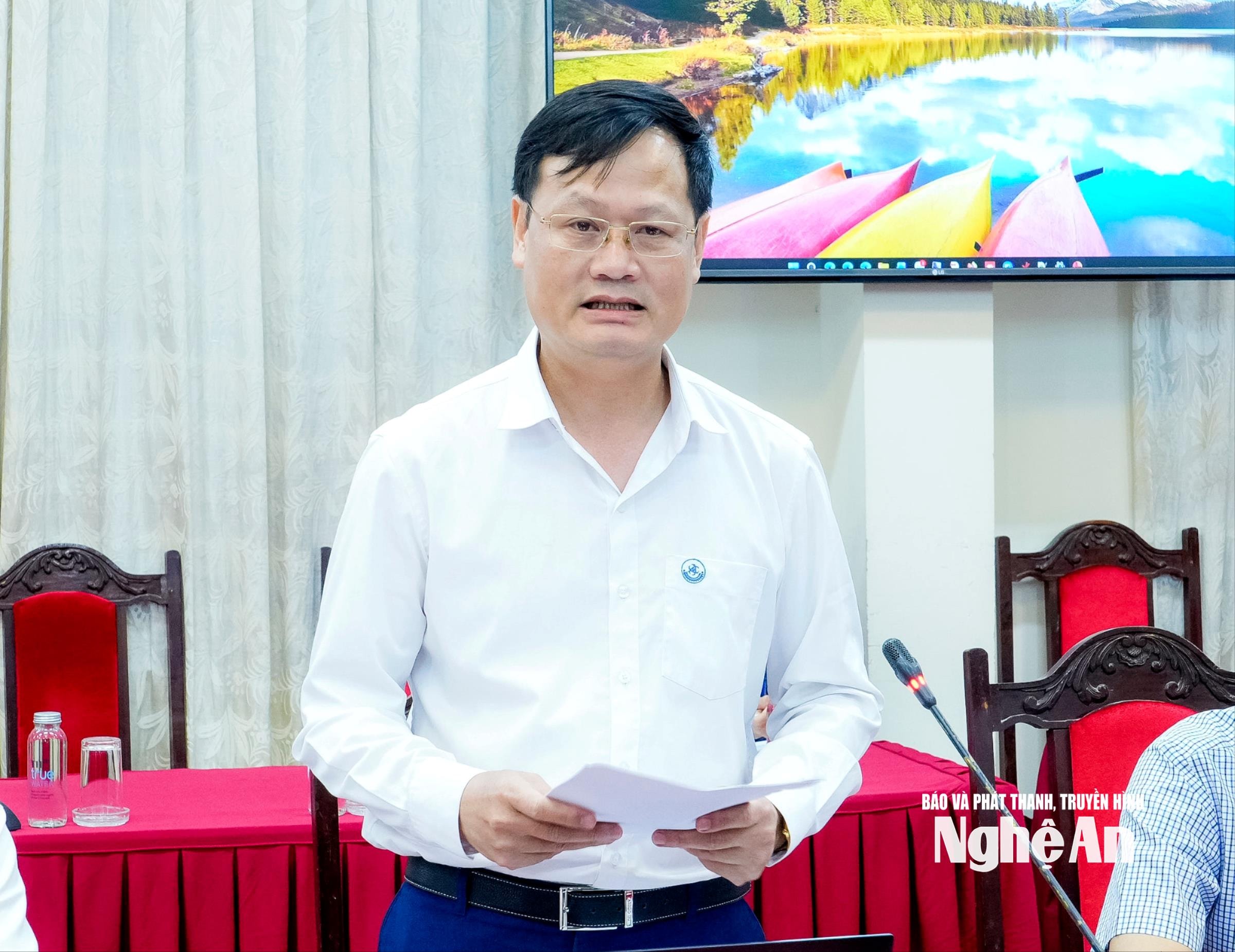 Giám đốc Sở Khoa học và Công nghệ báo cáo tình hình triển khai thực hiện Nghị quyết số 57-NQ/TW, ngày 22/12/2024 của Bộ Chính trị về đột phá phát triển khoa học, công nghệ, đổi mới sáng tạo, chuyển đổi số, cải cách hành chính và Đề án 06. Ảnh: Phạm Bằng