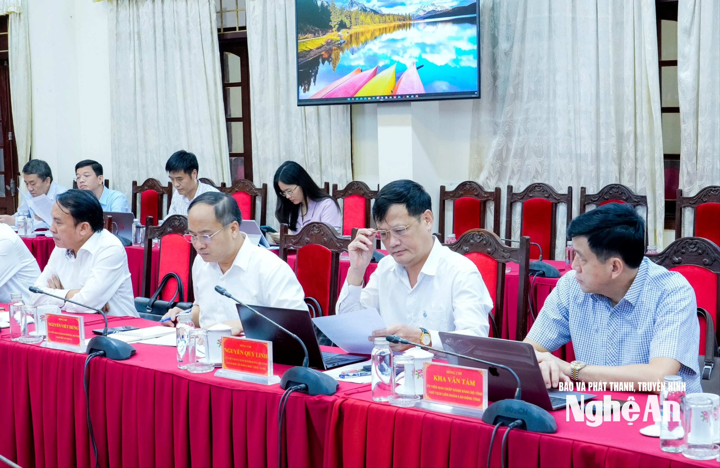Các đồng chí thành viên Ban Chỉ đạo tỉnh tham dự phiên họp. Ảnh: Phạm Bằng