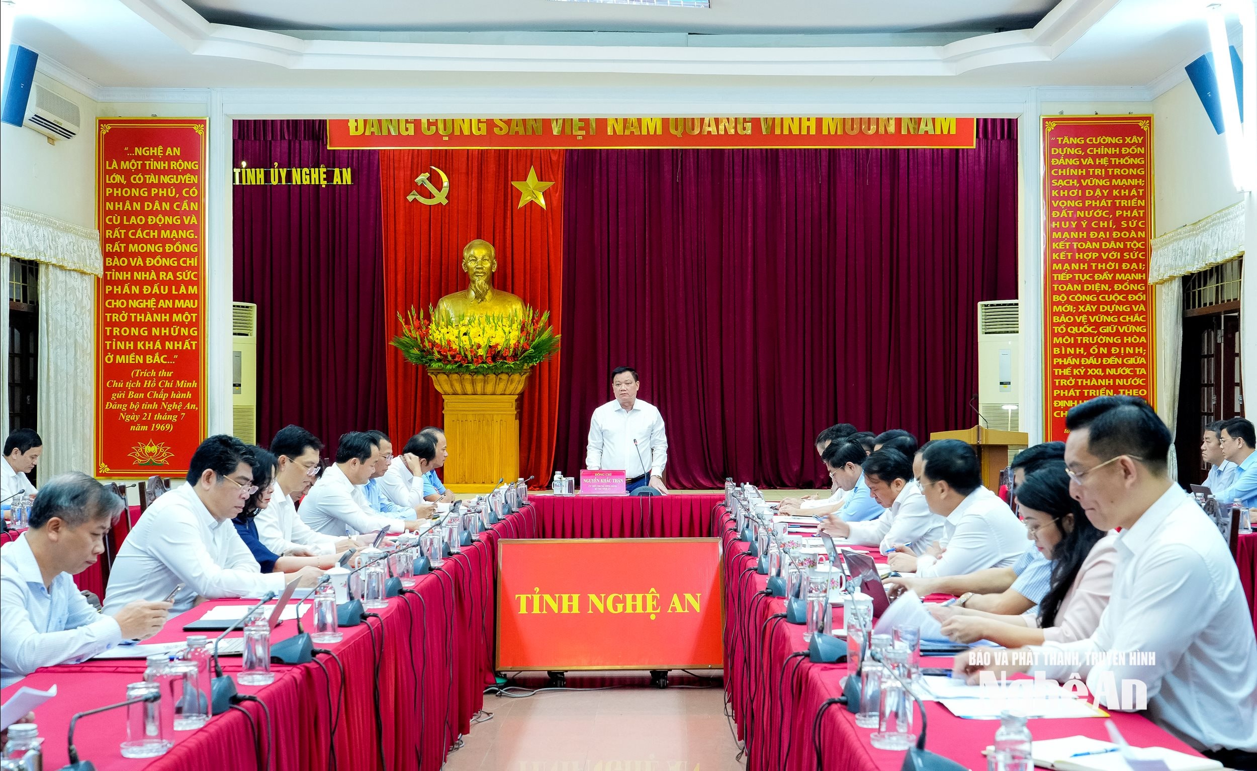 Bí thư Tỉnh ủy Nguyễn Khắc Thận yêu cầu khắc phục những tồn tại về hạ tầng số. Trong quý II/2026, dứt khoát khắc phục tình trạng lõm sóng tại các thôn, bản ở khu vực miền núi và cơ bản hoàn thành việc mua sắm thiết bị đầu cuối để phục vụ công tác chuyển đổi số.