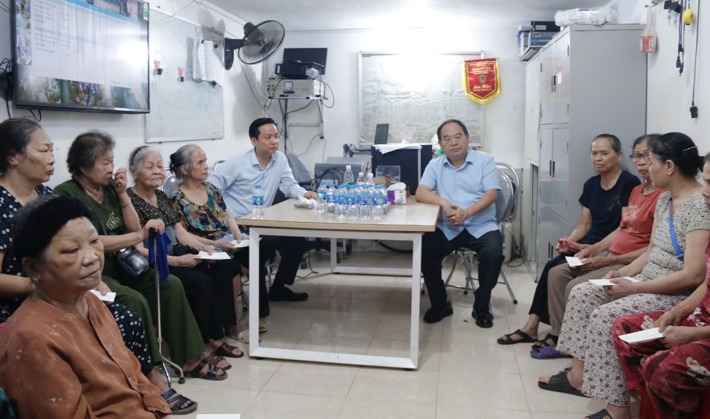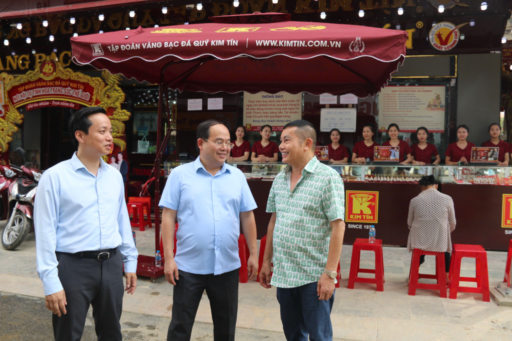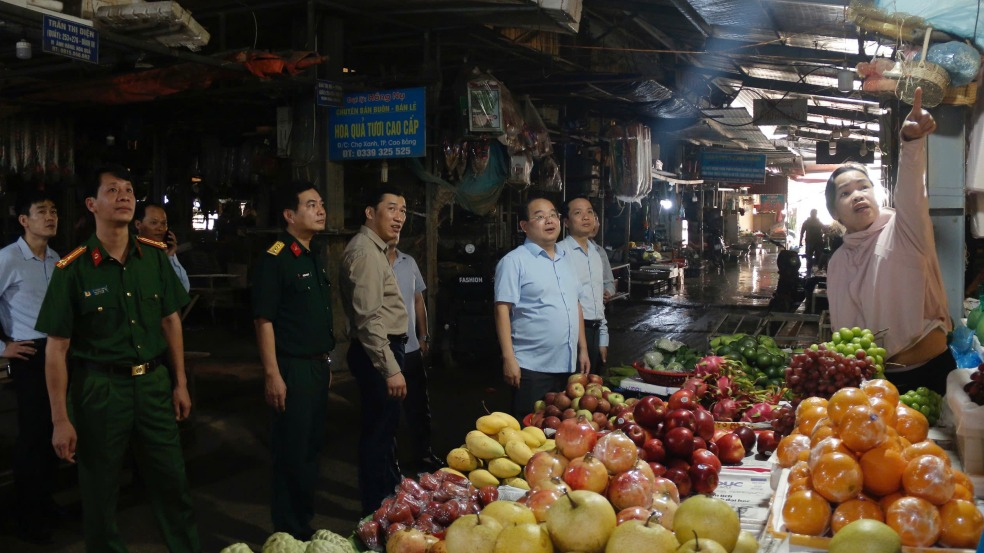 Đồng chí Bí thư Tỉnh ủy Quản Minh Cường và đồng chí Chủ tịch UBND tỉnh Lê Hải Hòa lắng nghe tâm tư nguyện vọng của tiểu thương ở chợ Xanh.