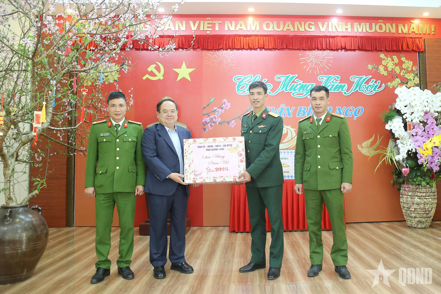 Tham gia cùng đoàn công tác có: Đại tá Lê Trọng Hòa, Ủy viên Ban Thường vụ Tỉnh ủy, Chỉ huy trưởng Bộ CHQS tỉnh Quảng Ninh; lãnh đạo công an tỉnh, Ban Chỉ huy Bộ đội Biên phòng tỉnh.
