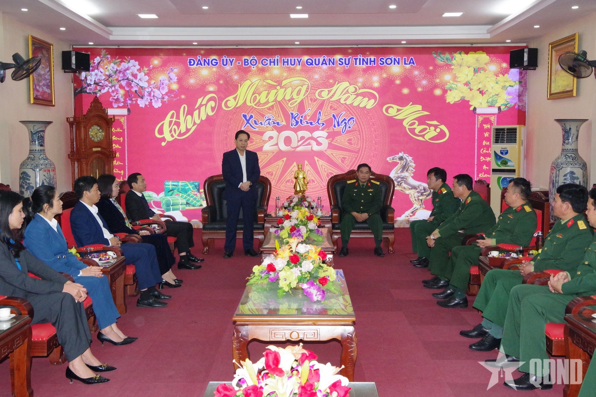 Chúc mừng và động viên cán bộ, chiến sĩ Bộ CHQS tỉnh, đồng chí Hoàng Văn Nghiệm ghi nhận, biểu dương những kết quả nổi bật, toàn diện của LLVT tỉnh Sơn La đạt được trong năm qua; đồng thời gửi lời chúc đến toàn thể cán bộ, chiến sĩ LLVT tỉnh cùng gia đình đón năm mới an khang, thịnh vượng và mong muốn, cán bộ, chiến sĩ LLVT tỉnh Sơn La tiếp tục phát huy tinh thần đoàn kết, hoàn thành xuất sắc nhiệm vụ được giao.