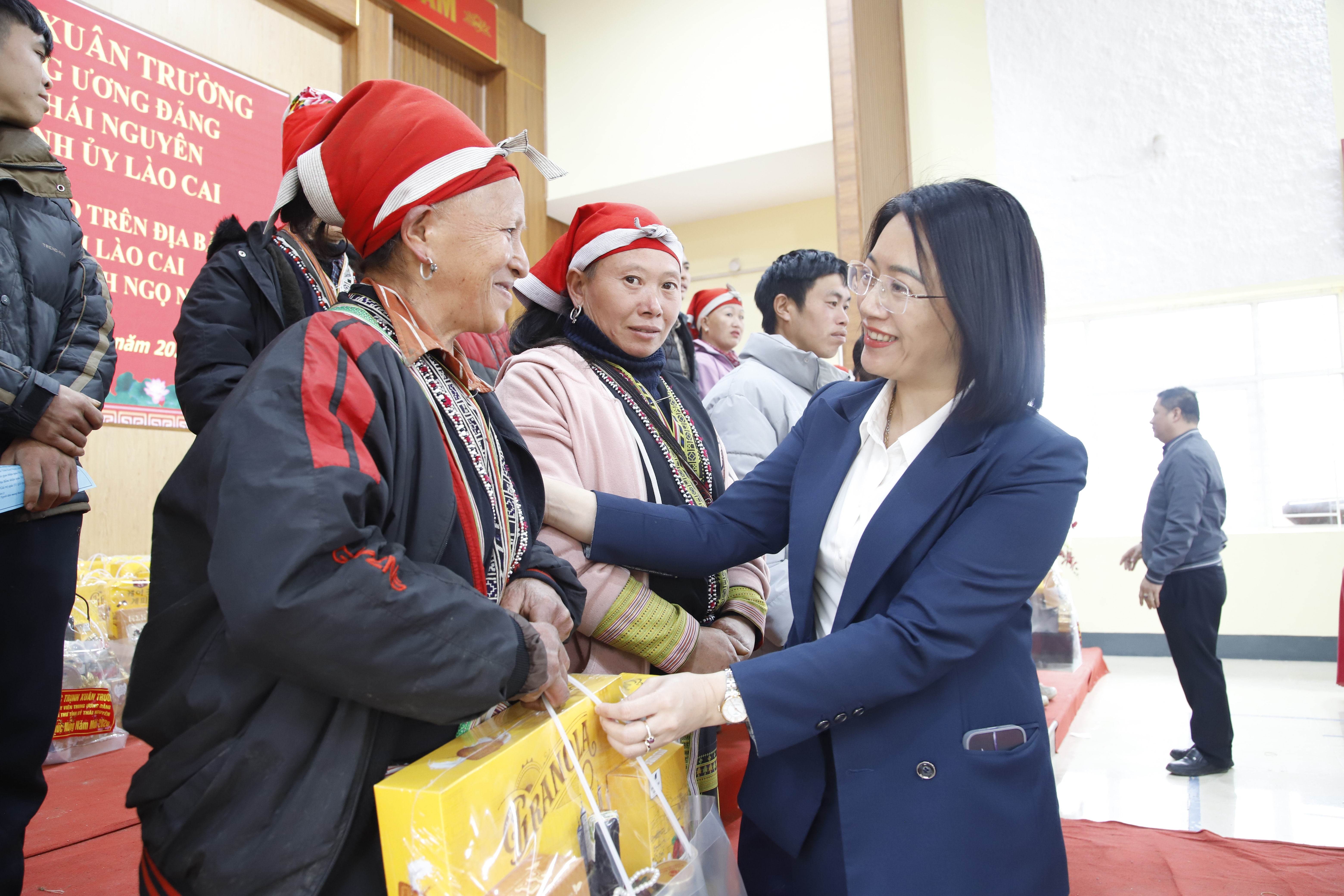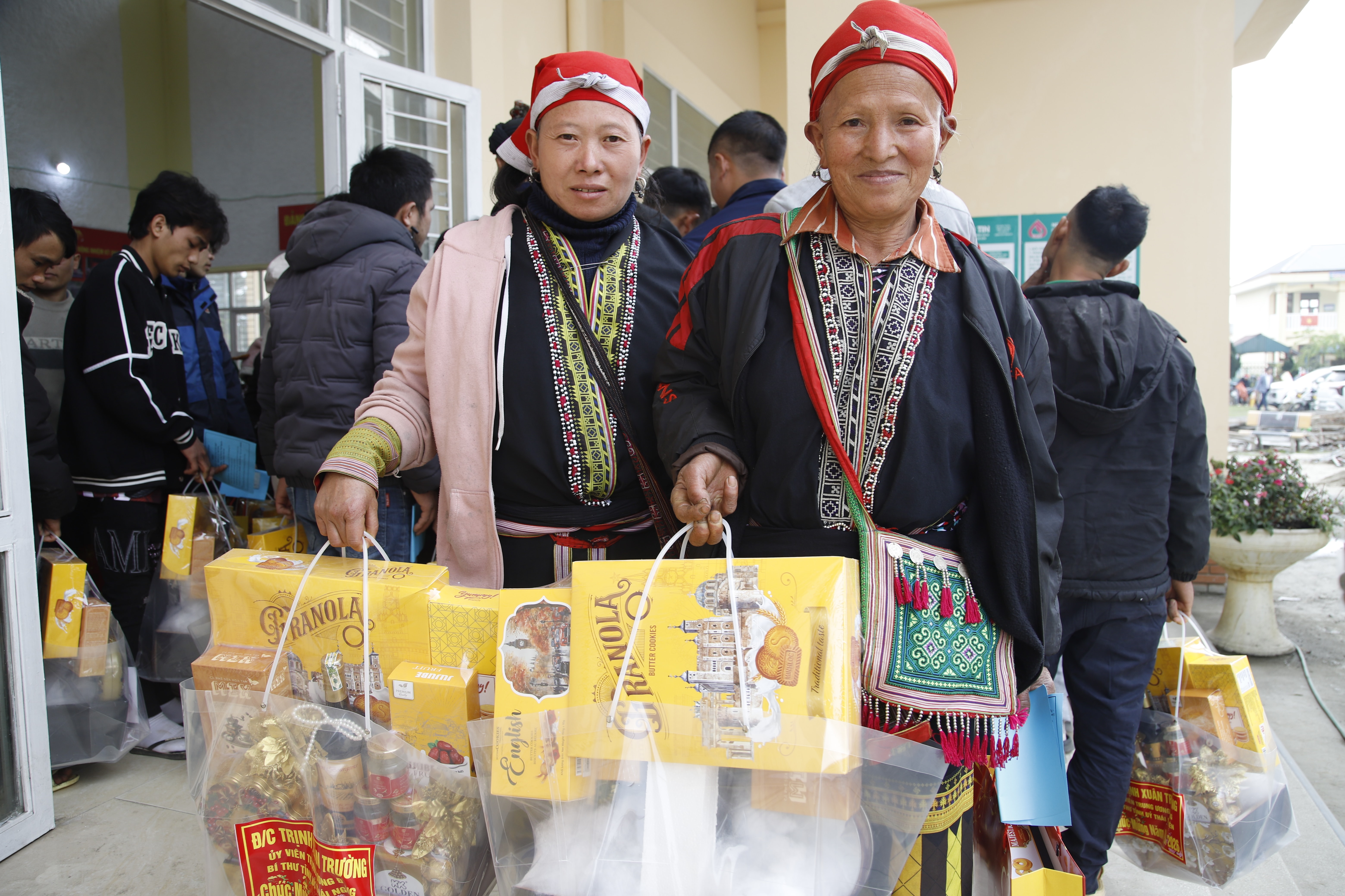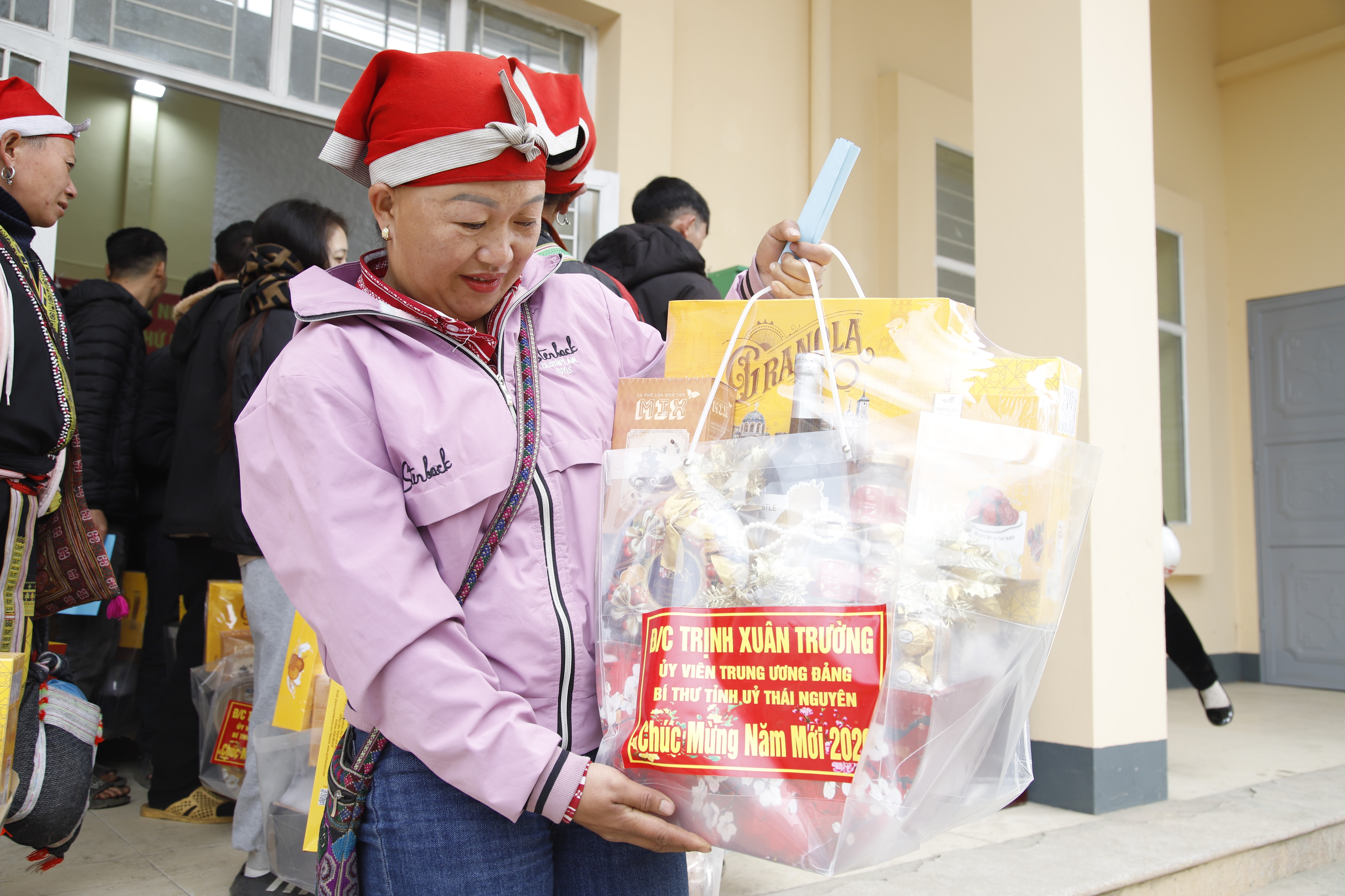 Bà con vui mừng khi nhận quà tết của Bí thư tỉnh ủy Thái Nguyên Trịnh Xuân Trường.