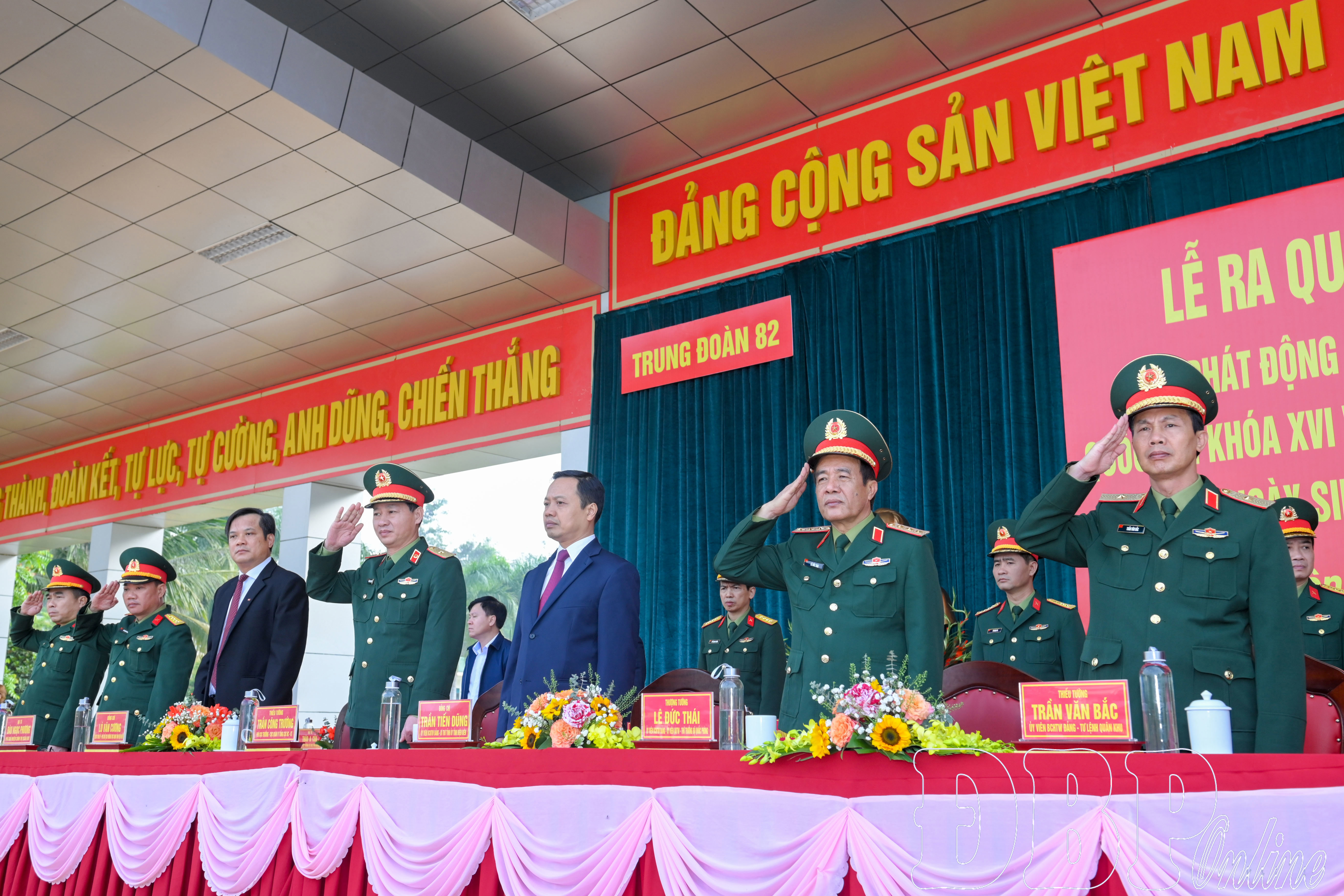 Cùng dự buổi lễ còn có thủ trưởng các cục, tổng cục Bộ Quốc phòng; lãnh đạo các sở, ban, ngành tỉnh cùng cán bộ, chiến sĩ Trung đoàn 82.