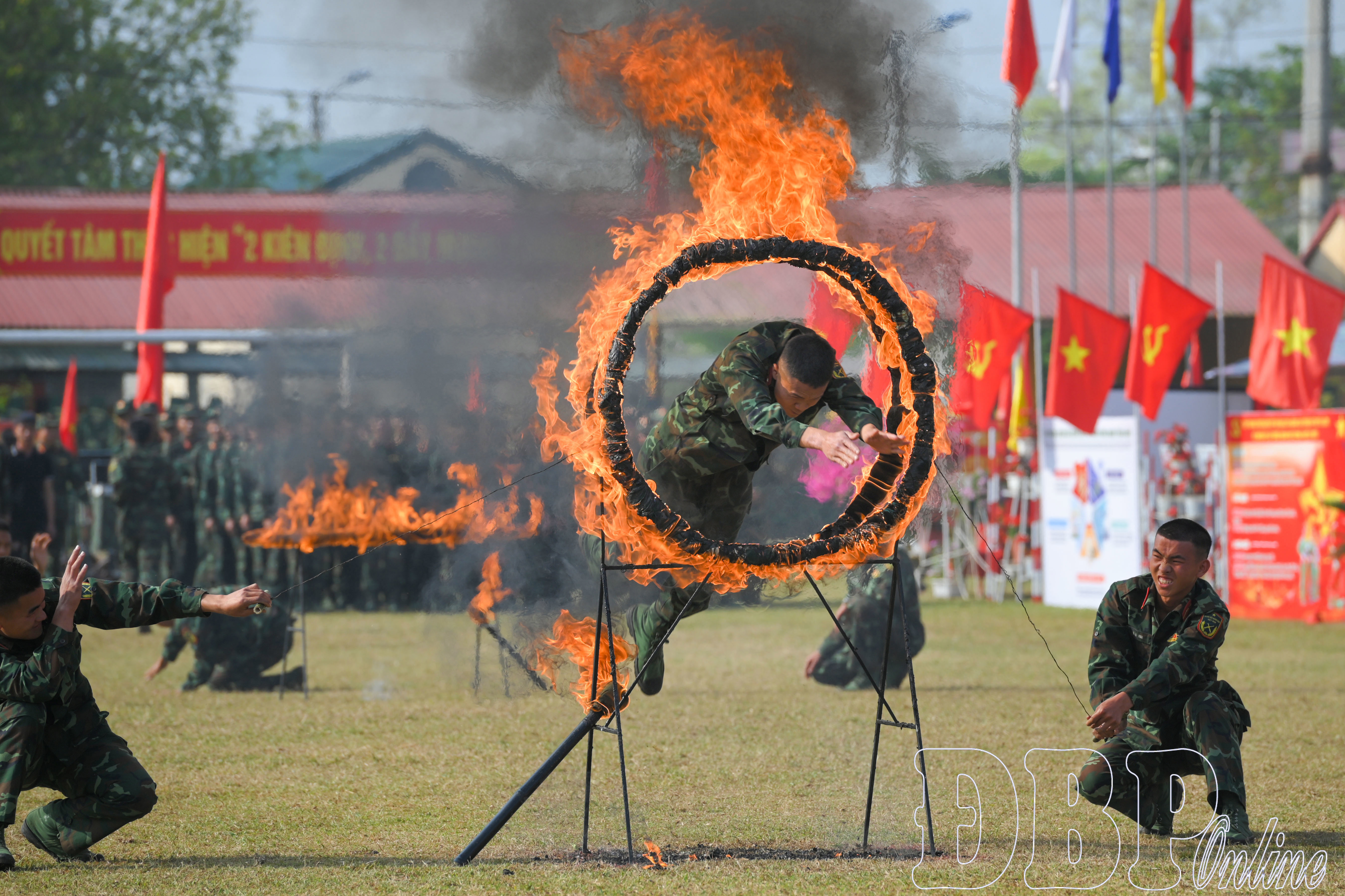 Chiến sĩ Trung đoàn 82 biểu diễn nội dung vượt vật cản.
