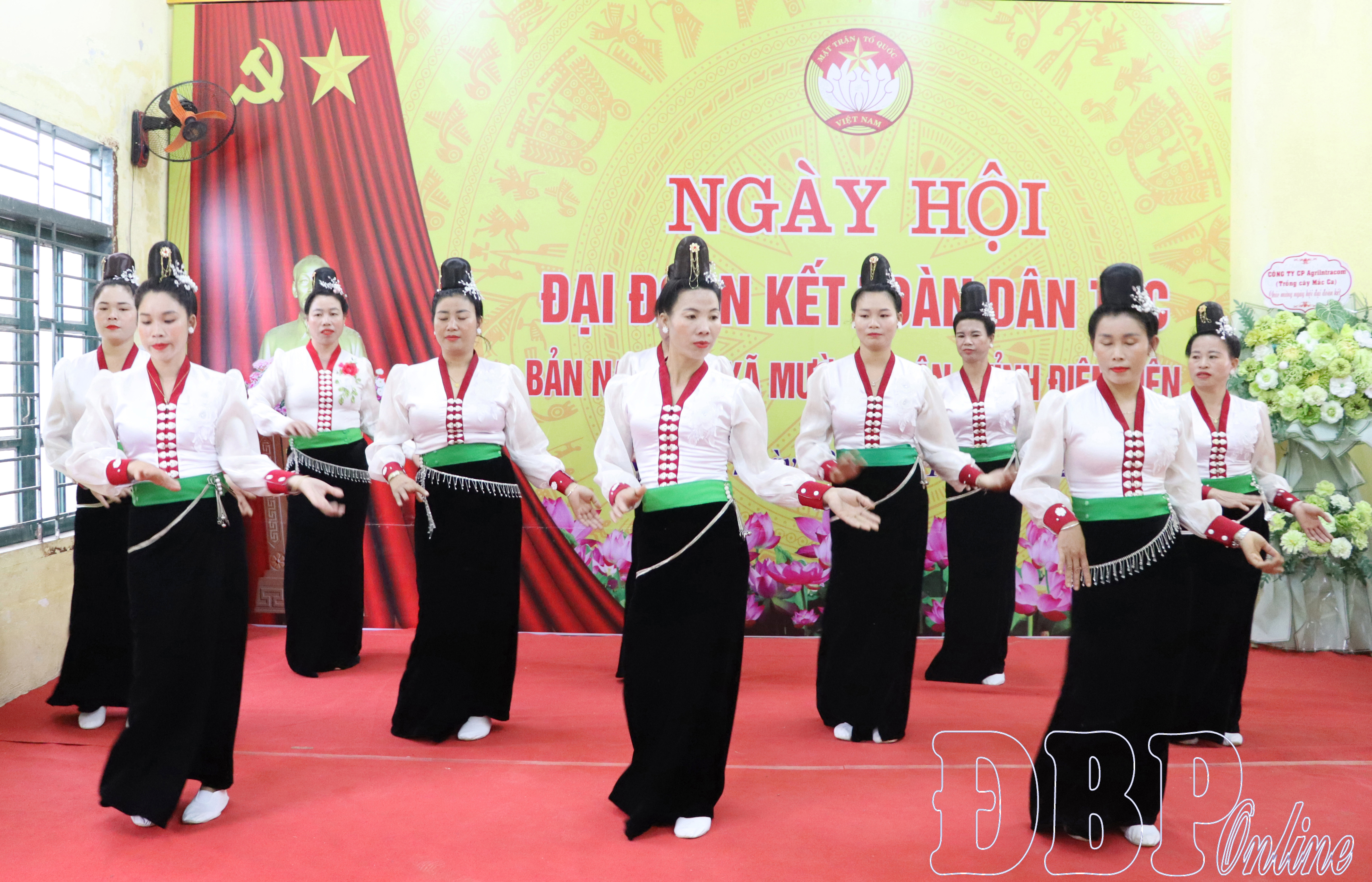 Nhân dân bản Na Pục biểu diễn văn nghệ chào mừng Ngày hội Đại đoàn kết dân tộc.