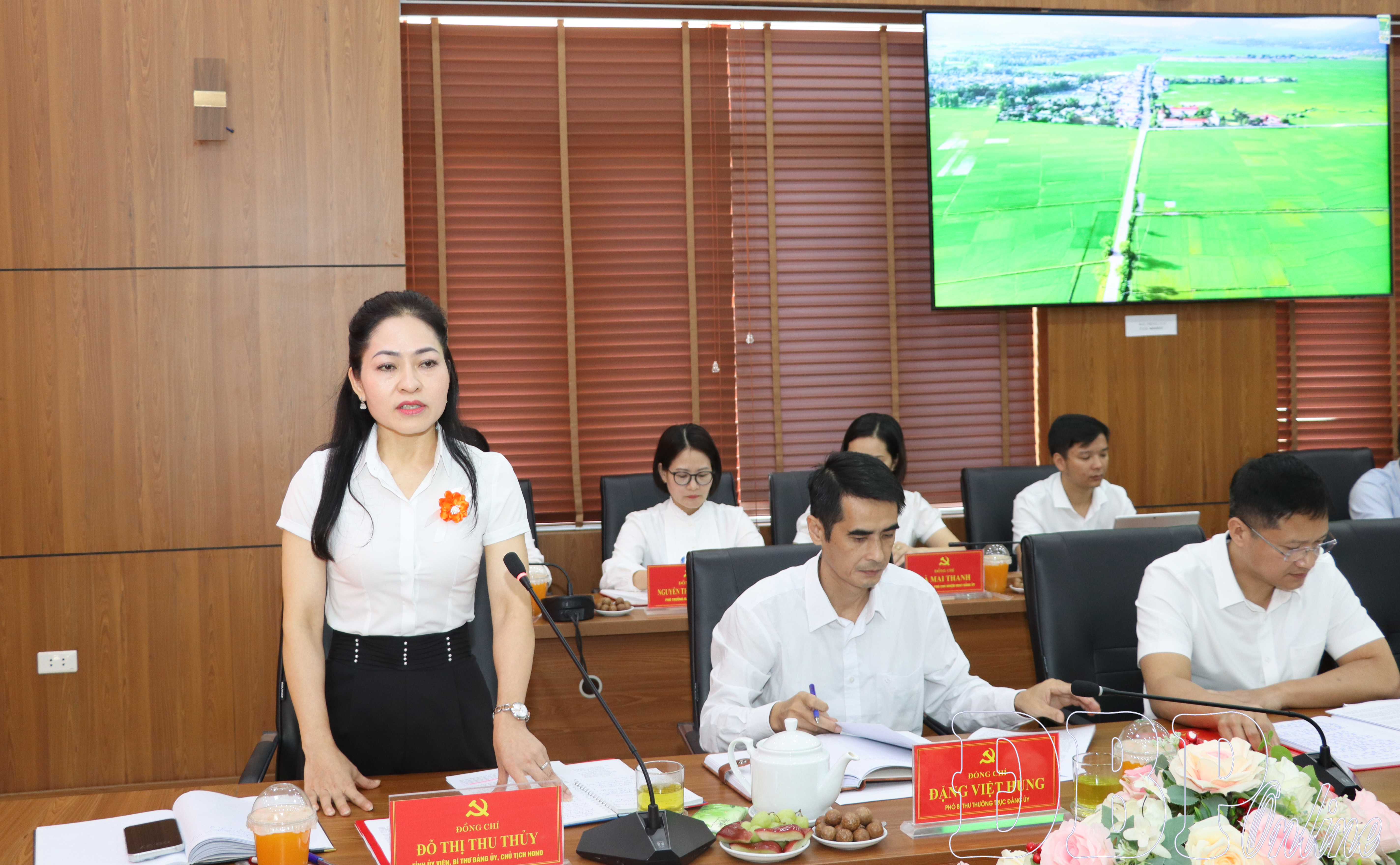 Lãnh đạo Đảng ủy phường Mường Thanh báo cáo kết quả thực hiện nhiệm vụ chính trị trên địa bàn trong thời gian qua.