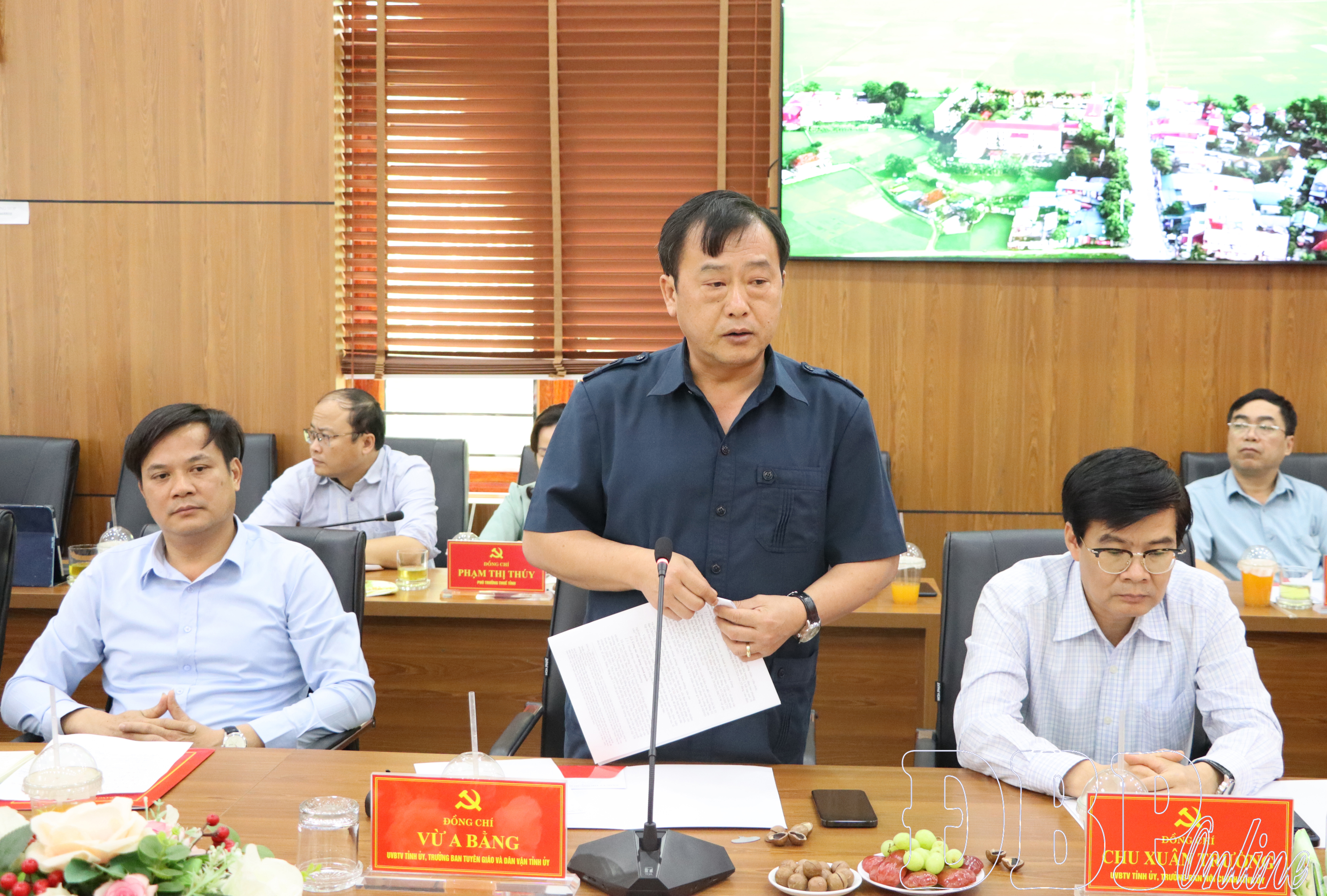 Đồng chí Vừ A Bằng, Ủy viên Ban Thường vụ Tỉnh ủy, Trưởng ban Tuyên giáo và Dân vận Tỉnh ủy phát biểu tại buổi làm việc.