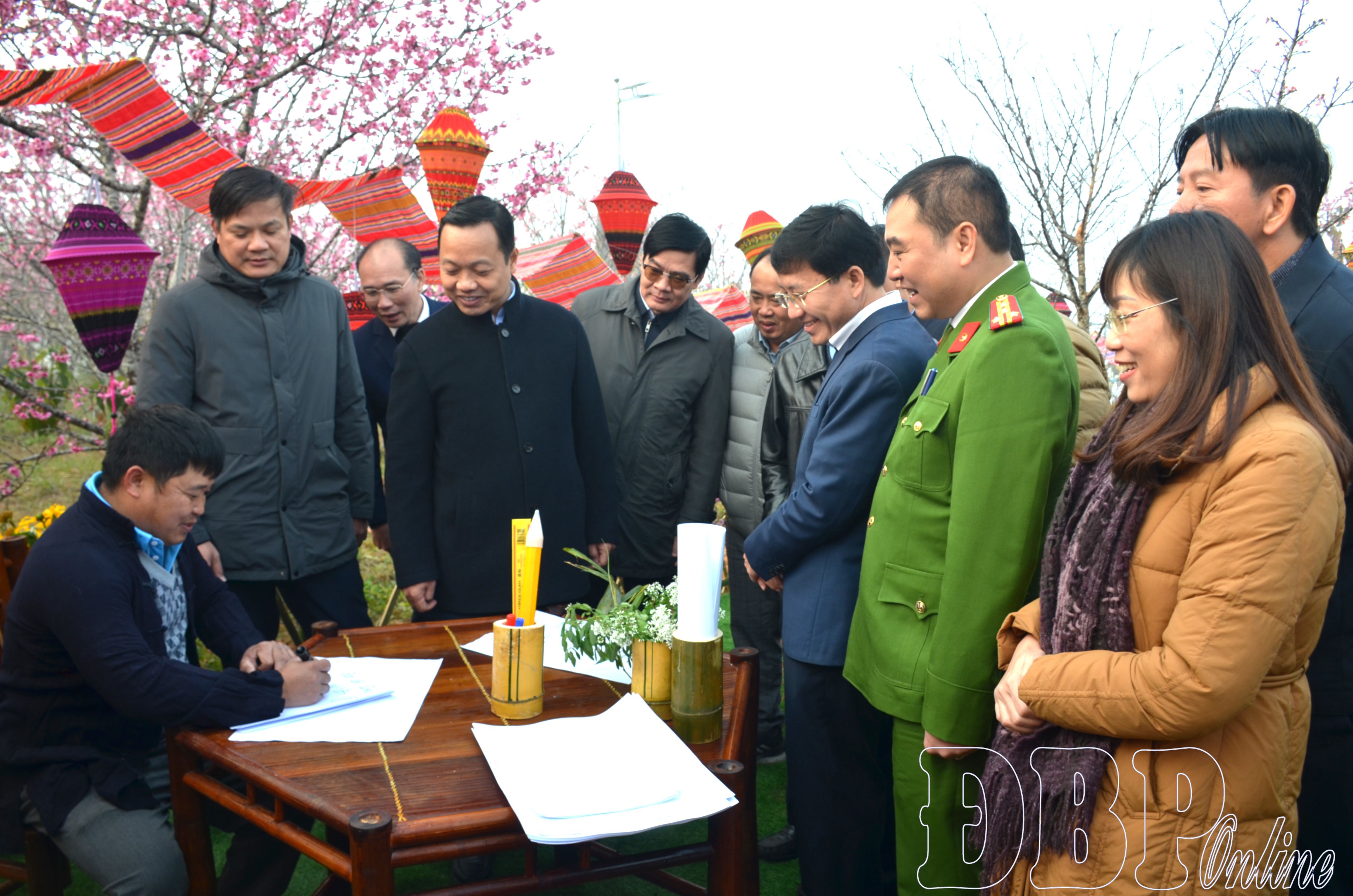 Đoàn công tác tham quan gian trưng bày tại Lễ hội Hoa anh đào - xã Mường Phăng năm 2026.