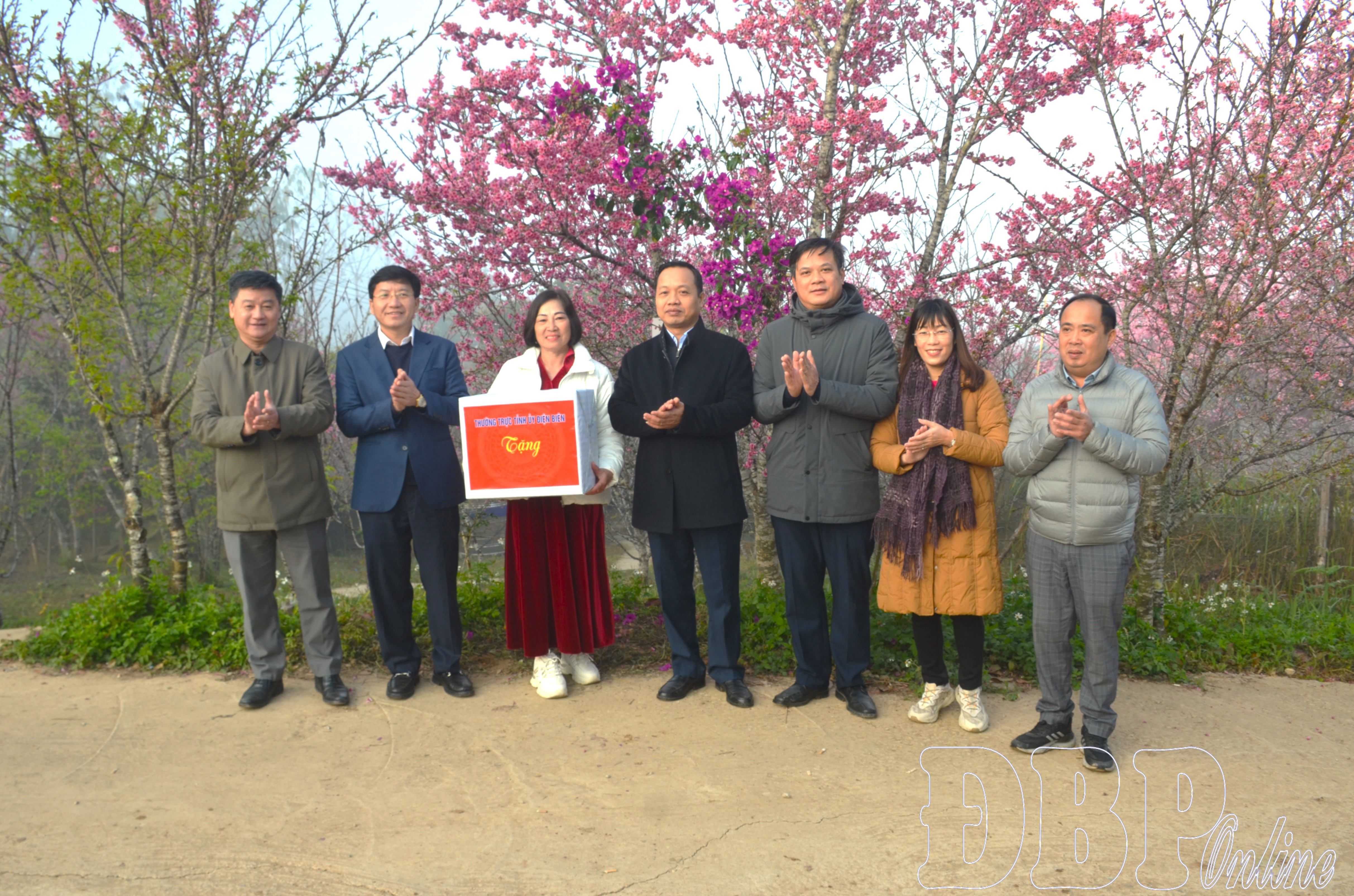 Bí thư Tỉnh ủy cùng Đoàn công tác tặng quà cho đại diện đảo hoa anh đào xã Mường Phăng.