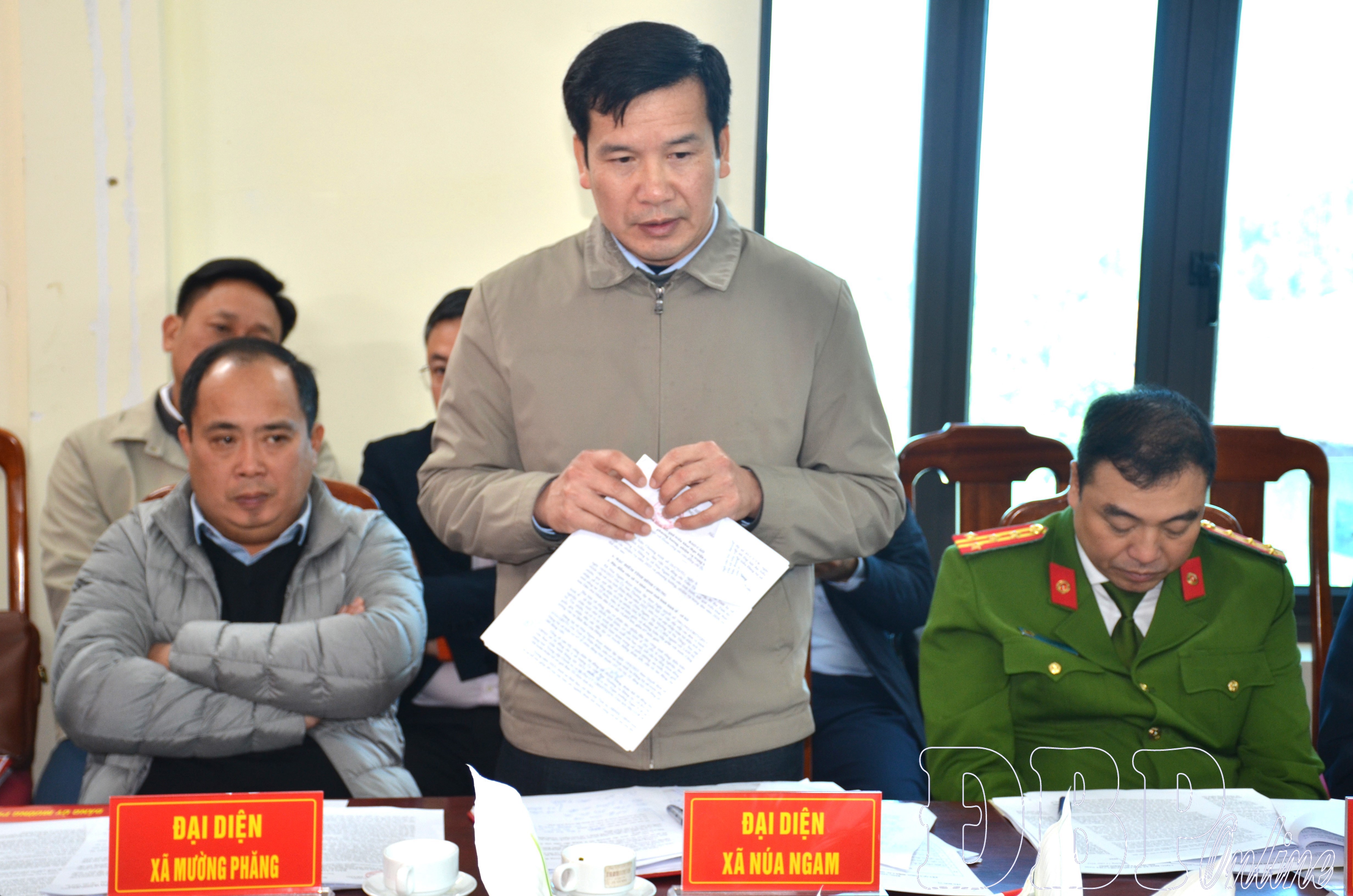 Ông Nông Quang Thắng, Bí thư Đảng ủy xã Núa Ngam phát biểu tại buổi làm việc.